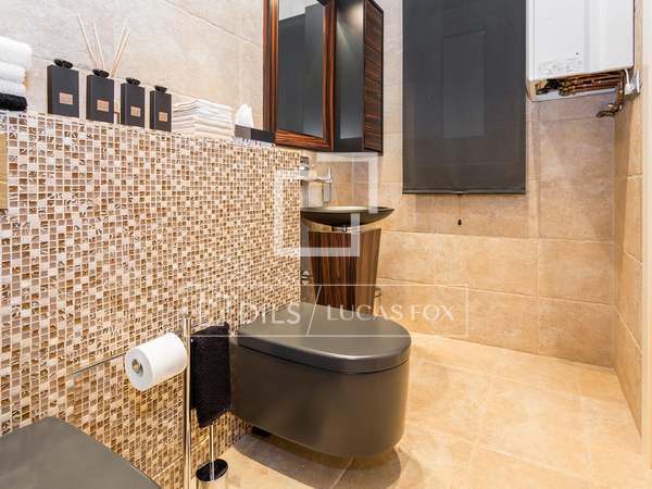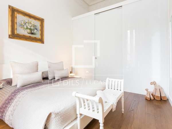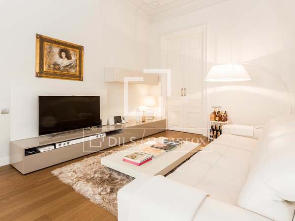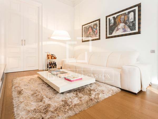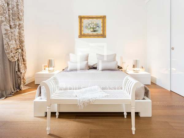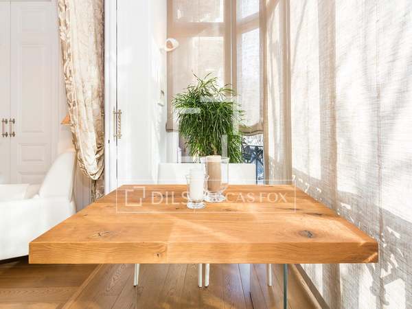 Spectacular exterior-facing apartment, completely renovated with 2 bedrooms, with a spacious living-dining room and a separate kitchen, for rent on the seventh floor of a building in the Eixample Right of Barcelona.