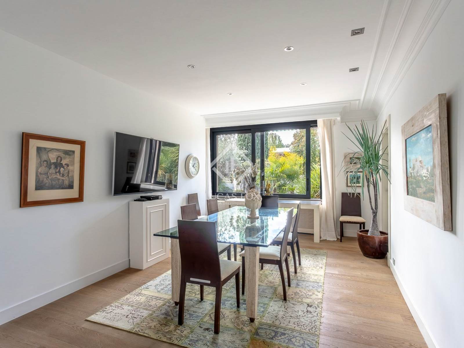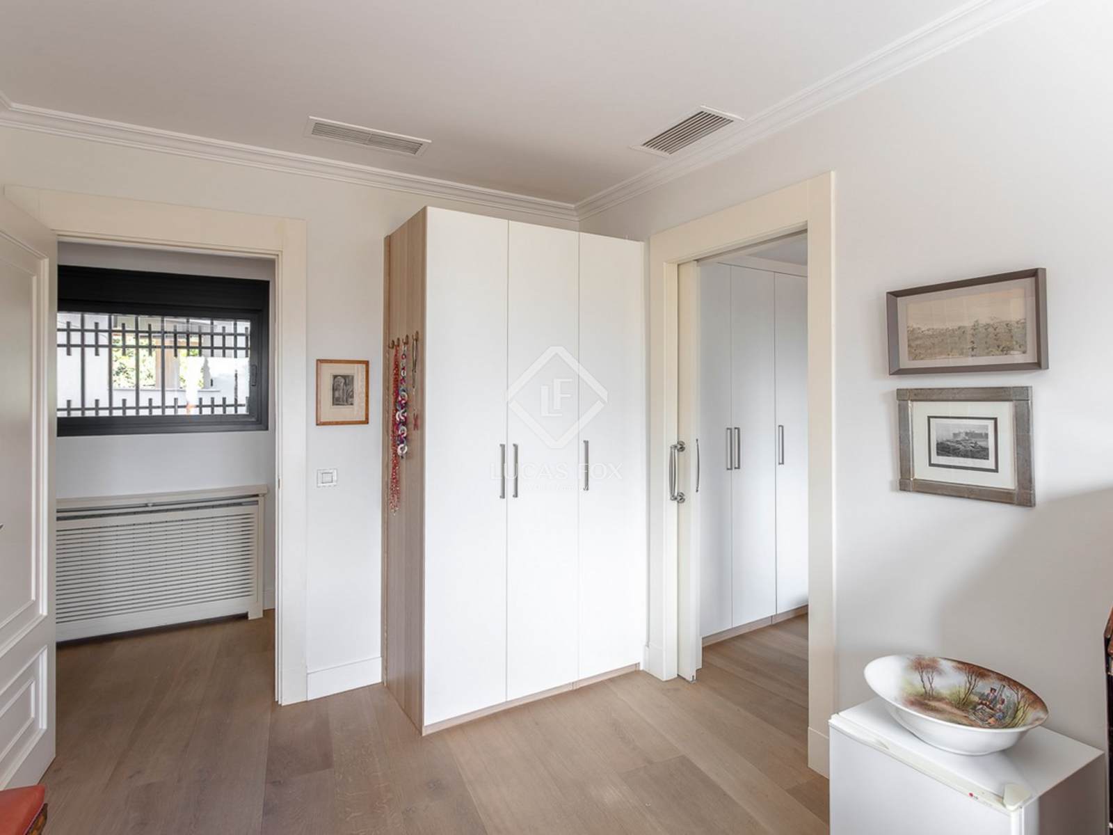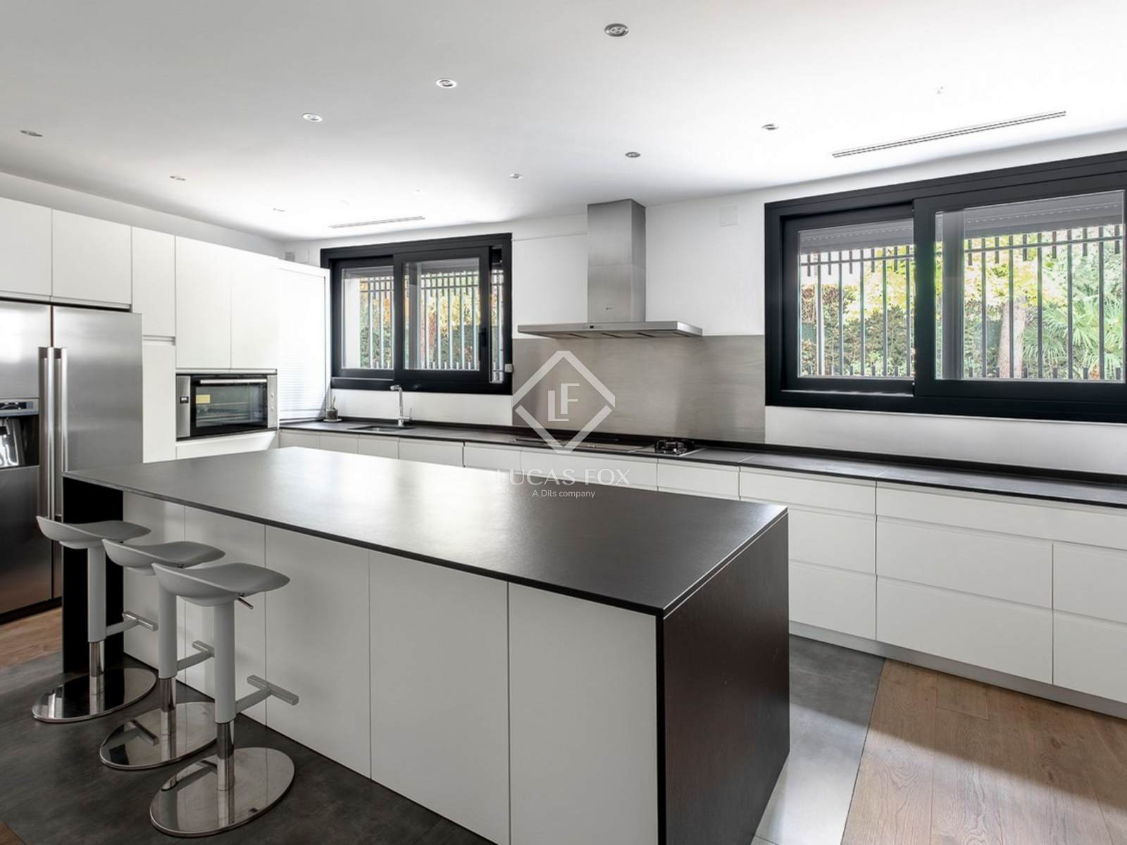 En la planta baja se ubican los amplios salones con ventanales al jardín, despacho y amplio comedor, una cocina con muebles y electrodomésticos de primera linea, comedor de diario, zona de servicio con dormitorio y baño, y amplios espacios de almacenaje.