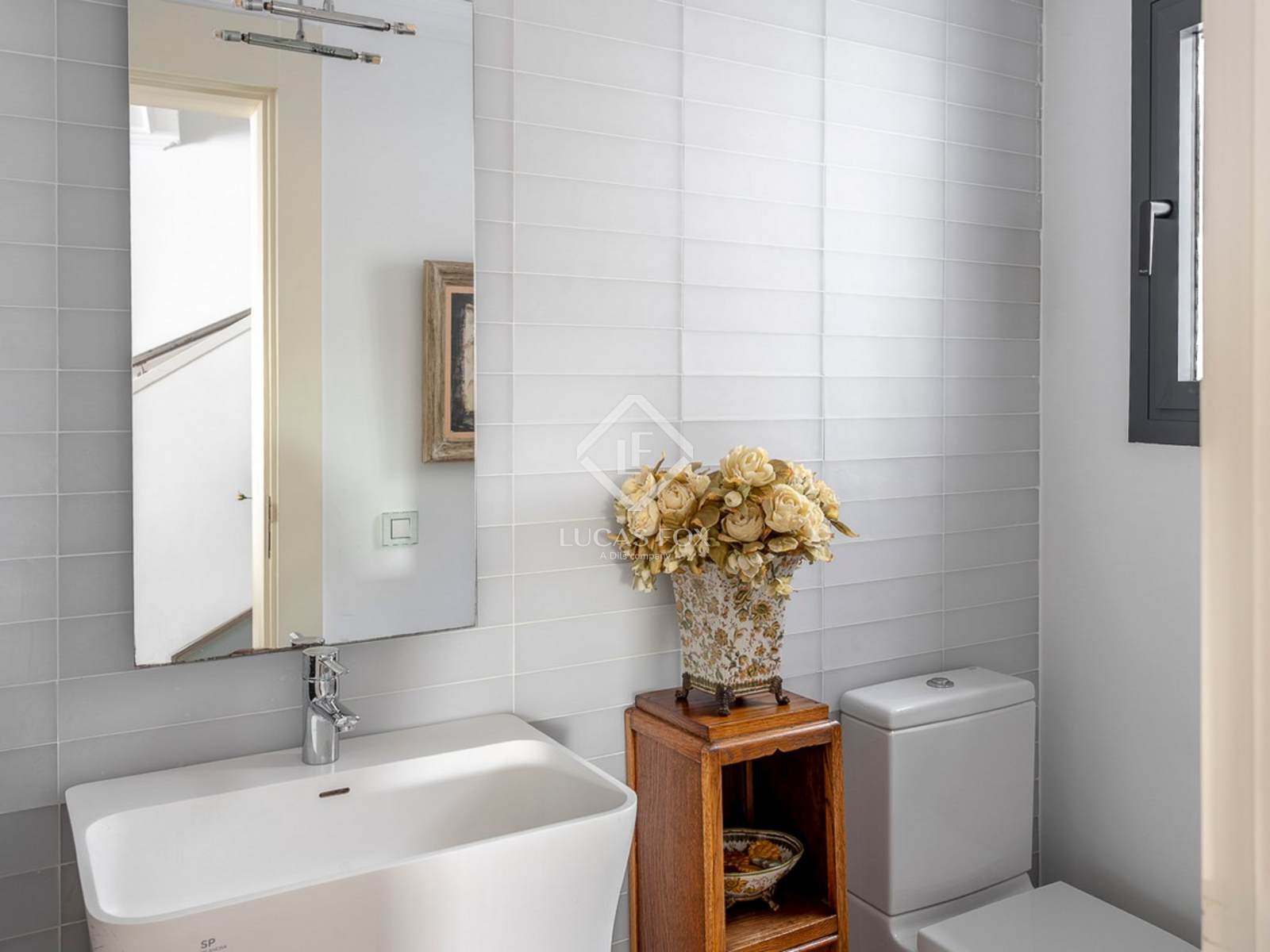 En la segunda planta, una acogedora sala de estar y una gran terraza ofrecen un ambiente íntimo y relajado.