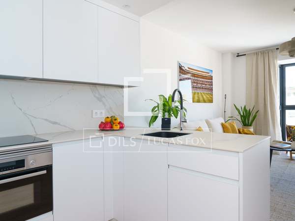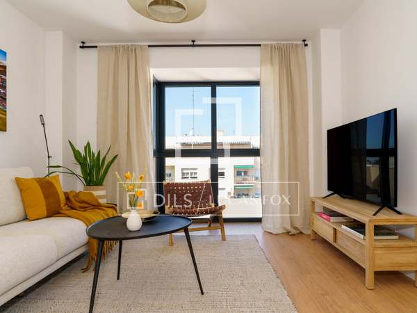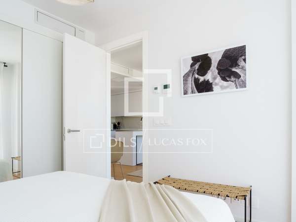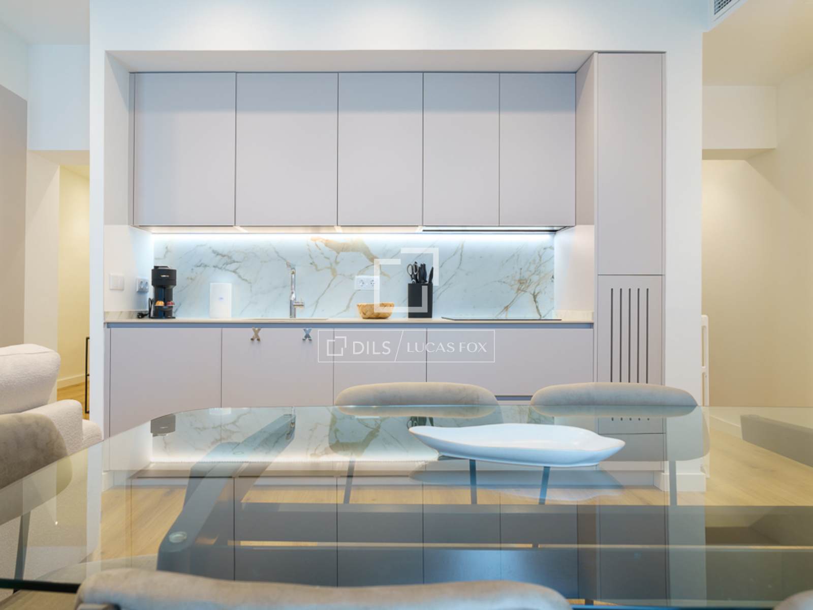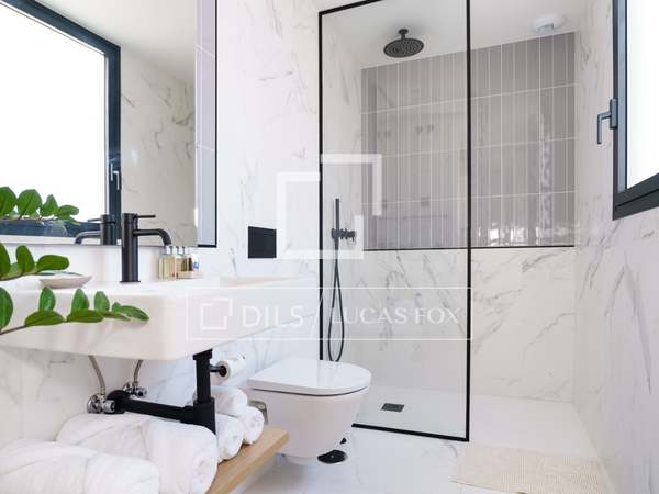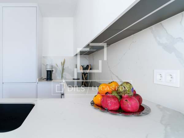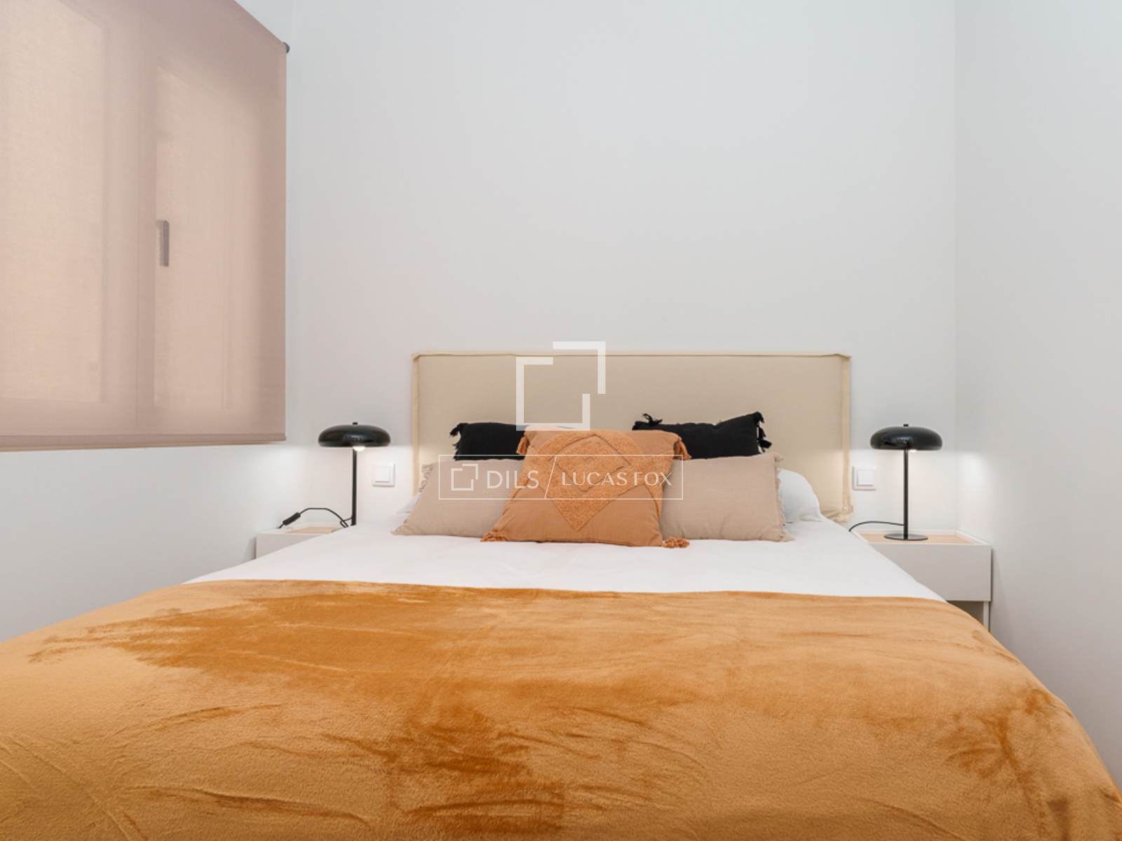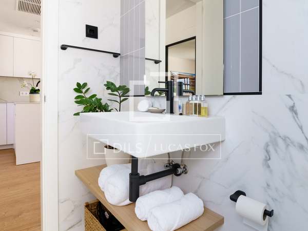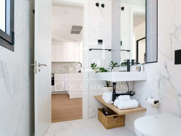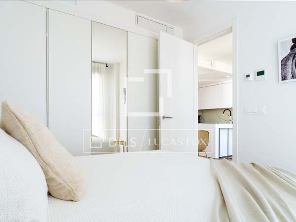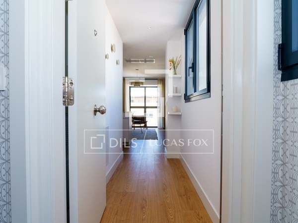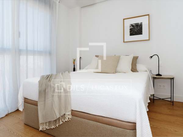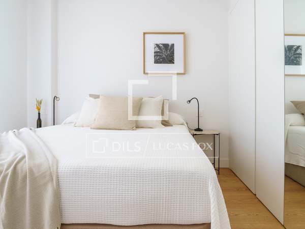 Charming and welcoming apartment, with everything you need for a wonderful room in a prime residential and commercial area of Chamberí. It has been completely renovation to a high standard and features a carefully selected range of furnishings that create a very pleasant atmosphere. Upon entering, there is a corridor with a coat rack; to the left is a door leading to the master bedroom with its en-suite bathroom . Continuing down the corridor , you'll find the living room / dining room room with an integrated kitchen. The living room has a cream-colored, three-seater sofa with cream and black cushions, centre tables on a light-colored rug, and a wooden cabinet housing a large flat-screen TV. Behind the sofa is the dining room table, made of glass with a metal base, and six gray fabric chairs. The kitchen runs the entire length of the living room/ dining room, concealing all the high-end appliances . It features cream-colored cabinetry with a stone countertop, ample storage space, and is fully equipped with cookware for eight people. In this area, we have two large floor-to-ceiling windows, the one in the dining room being a balcony, a lovely lamp, and curtains that complement the decor. Beyond the kitchen is the corridor leading to the other bedrooms and the second bathroom. The first bedroom has a 1.40m bed with storage underneath, wooden bedside tables, a window overlooking the street, and built-in wardrobes. The second bedroom has two 0.90m single beds with storage underneath, a bedside table with a lamp, and built-in wardrobes. It has a window overlooking an courtyard. These two bedrooms share a bathroom with a shower and glass enclosure, located in the corridor. The master bedroom, located at the entrance of the apartment, has a 1.60m bed with storage underneath, a fabric headboard, bedside tables with reading lamps, built-in wardrobes , and a window overlooking an courtyard. It has its own spacious en-suite bathroom with two sinks, a shower with a glass enclosure, and a window. In the entrance corridor, there's a wardrobe that conceals the washer/dryer, the electric water heater, and cleaning supplies. All the floor are wood, and the bathrooms have tile. The building has a lift charming wooden elevator, a concierge , and a ramp for disabled access .