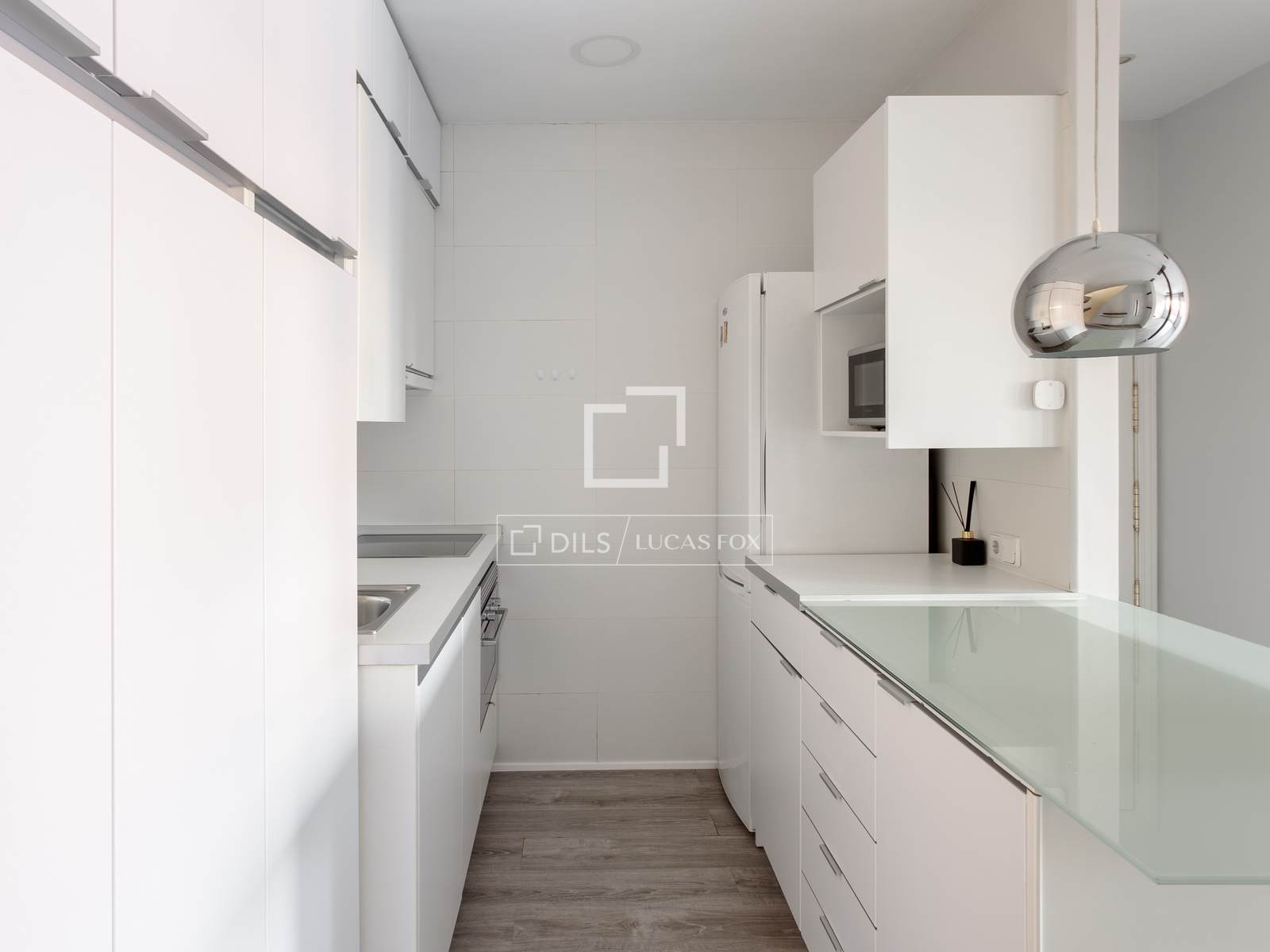 From the entrance hall, you enter a spacious and bright living-dining room, designed as an open and versatile main space, with access to the terrace, ideal for both relaxation and entertaining. The room features a modern and elegant American-style kitchen, fully equipped with high-end appliances , including a refrigerator, dishwasher, oven, extractor hood, ceramic hob, microwave, and vacuum cleaner, offering a practical and move-in ready solution. This integration creates a open-plan, sophisticated, and seamlessly connected environment that enhances the feeling of spaciousness and light.