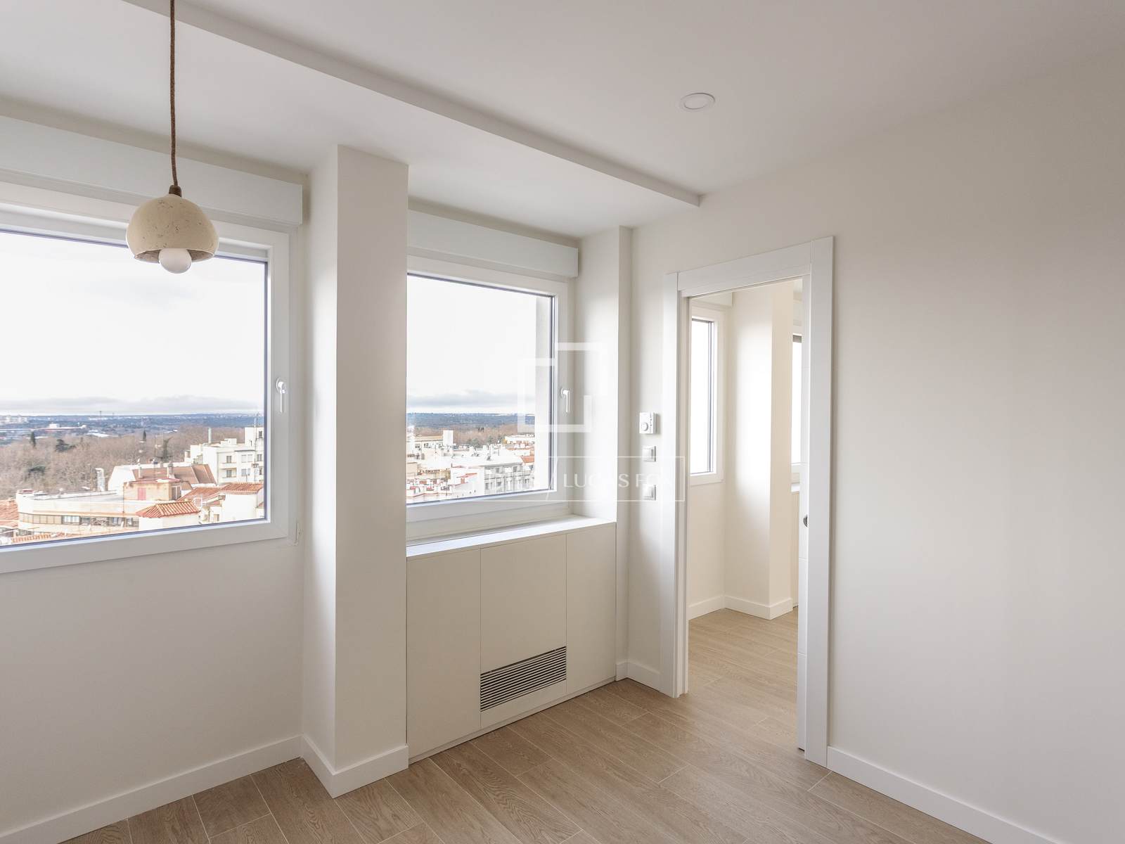 DIL / LUCAS FOX presents this exclusive, newly renovated , exterior apartment for rent, located in the heart of the Arguelles neighbourhood , just 50 meters from Plaza de España. The property stands out for its meticulous renovation, contemporary design, and exceptional natural light throughout the day, offering a perfect balance of elegance, functionality, and comfort.