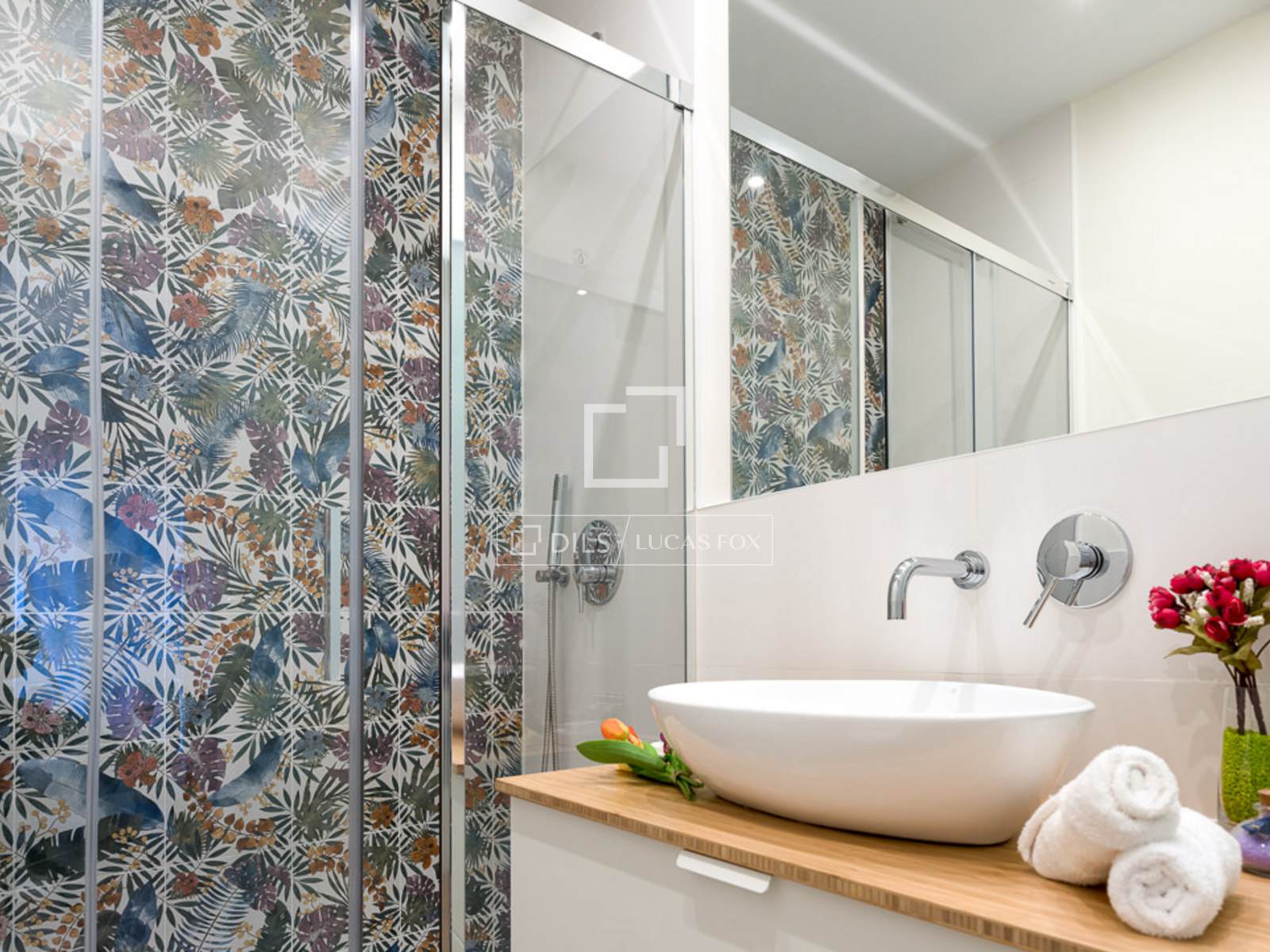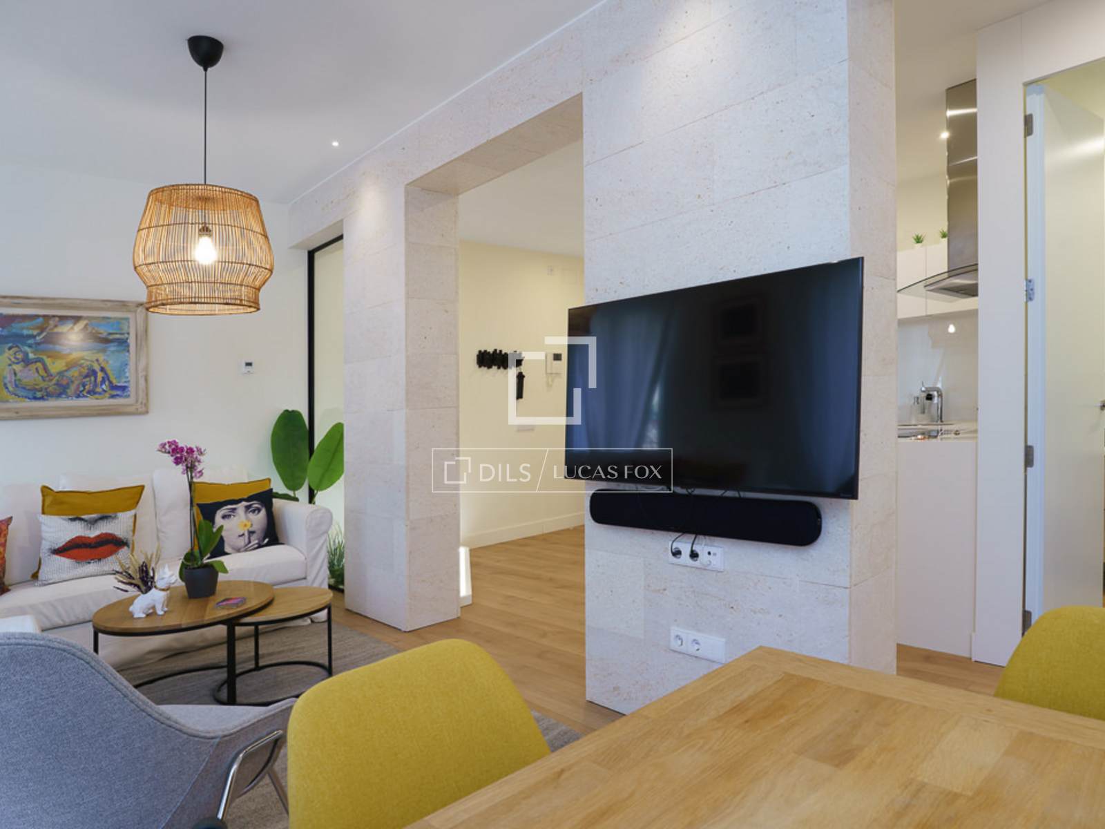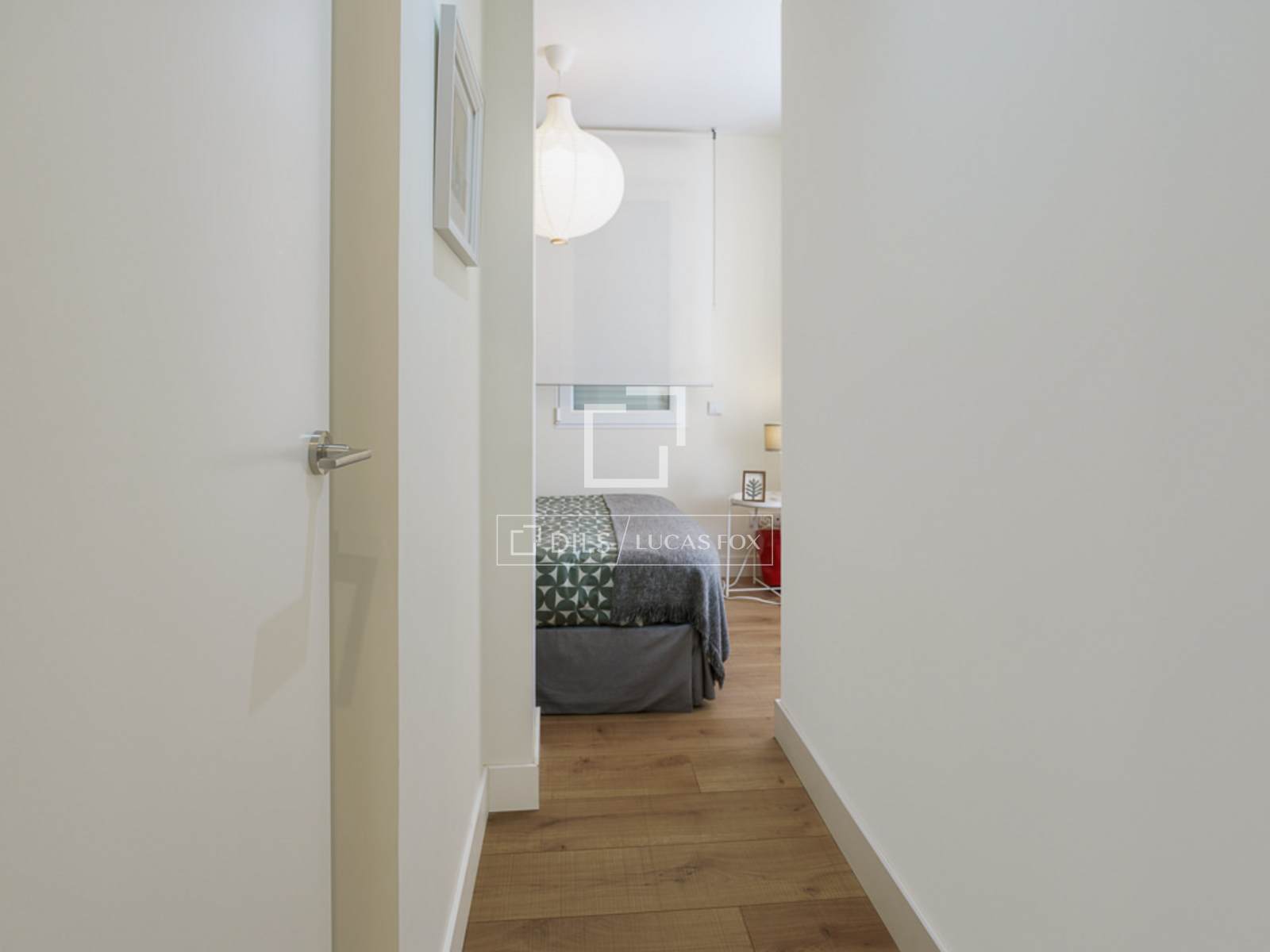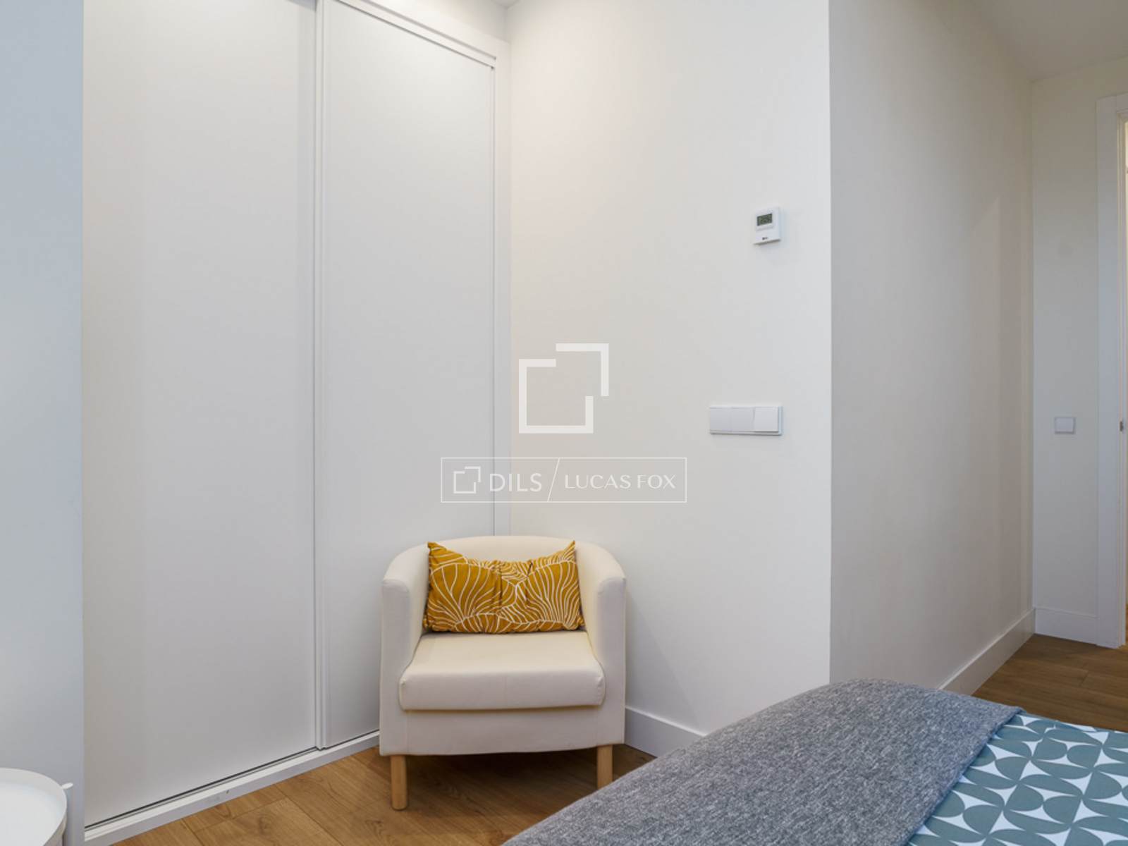 Beautiful, fully renovated apartment on Fernán González Street, near Jorge Juan, in the Goya district. This bright, exterior apartment boasts five balconies overlooking the street, with natural ventilation in every room. Located in a classic building with an elevator, it's situated in a vibrant and bustling area of Madrid, close to Salvador Dalí Square. Upon entering, the open floor kitchen is to the left, while the living room / dining room is straight ahead. Cream-colored stone-clad columns separate the kitchen from the living room/ dining room area, and a glass partition encloses a small stone garden , providing a sense of separation from the entrance. The living room features a large, white, six-seater sofa with decorative cushions, a rug, round wooden centre tables, and an armchair, creating a very inviting atmosphere. The dining room includes a rectangular wooden table and six chairs. A small wooden sideboard with hinged doors provides storage for dishes and decorative items. A column separates the kitchen from the living/dining area, which features a large flat-screen Smart TV with an integrated sound system. The TV is movable with an arm that allows viewing from various angles. The open-plan kitchen is L-shaped, all white with a stone countertop, and conceals all top-quality appliances . It has ample storage space for a full complement of cookware for eight people. A corridor leads off to the left with two doors and a white lacquered wardrobe . The first door opens to the second full bathroom with a shower and glass enclosure. Next is a wardrobe containing the air conditioning unit and cleaning supplies. The third door opens to the second bedroom, which has a 1.50 x 2.00 meter double bed. This room has a built-in wardrobe with two sliding doors, a comfortable white fabric chair, and a bedside table. The property has underfloor heating heating. All the floor is wood, except for the bathrooms, which have tile. At the end of the corridor , a door leads to the master bedroom. Upon entering, you'll find a white storage unit. To the left, a sliding glass door leads to the en-suite bathroom , complete with a shower and glass enclosure. To the right is a 1.80 x 2.00 meter bed with two white bedside tables and a gray fabric headboard. The room features two large windows overlooking the street, each with electric shutters. Opposite the bed is a wooden desk and chair. Above the desk sits a flat-screen Smart TV. The room also boasts spacious built-in wardrobes with ample storage.