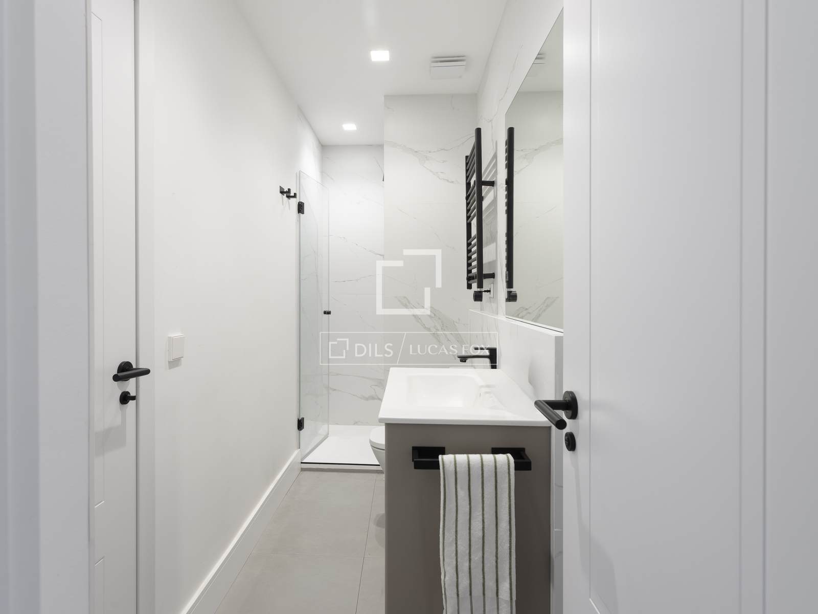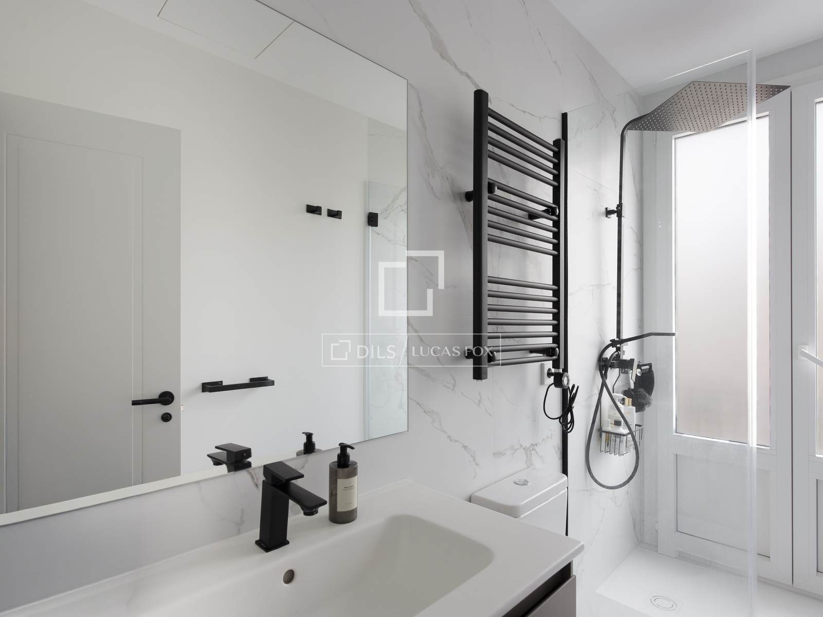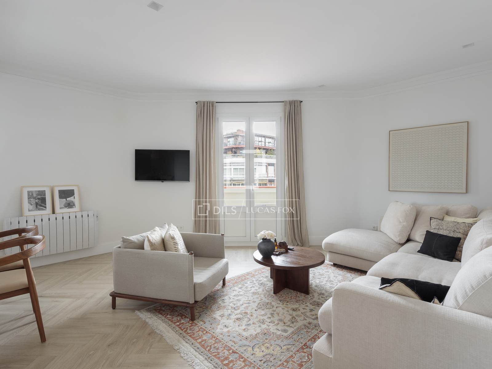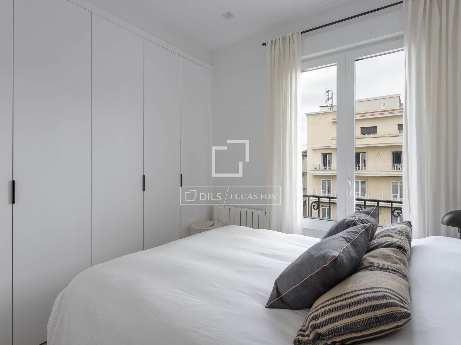 Dils Lucas Fox offers this bright and furnished, recently renovated exterior in the prestigious Salamanca neighbourhood , available from March 25, 2026. It is available for rental periods of 12 to 24 months. The apartment is located 300 meters from the majestic Retiro Park. Situated on the sixth floor , it features a small terrace and unobstructed views over Madrid. The entrance hall, with a coat closet , leads to a spacious dining room living room with a modern, brand-new American-style kitchen and a central island with a breakfast bar. The living room area, furnished with a chaise lounge sofa, access onto a beautiful terrace overlooking the city of Madrid, followed by a dining room for six. The property has two double bedrooms, both exterior-facing, with built-in wardrobes and ensuite bathrooms with showers. The main bedroom bathroom has an exterior. The other bathroom has double doors, so it can also be accessed from the corridor and used as a guest bathroom . The property has central heating with radiators and a heat cost allocator, as well as ducted air conditioning. The building has a concierge service and an elevator. Community fees and property tax (IBI) are included in the monthly rent.