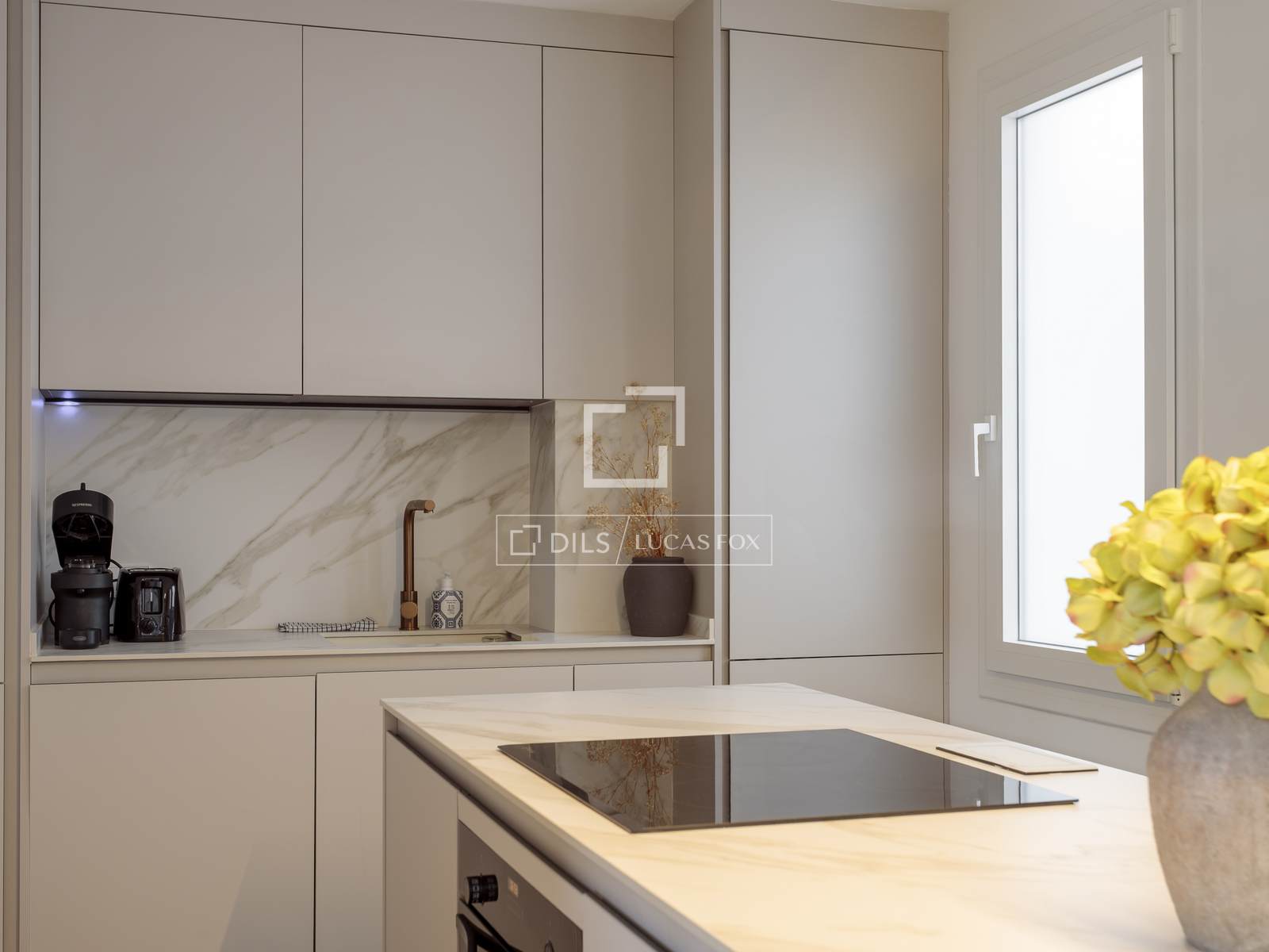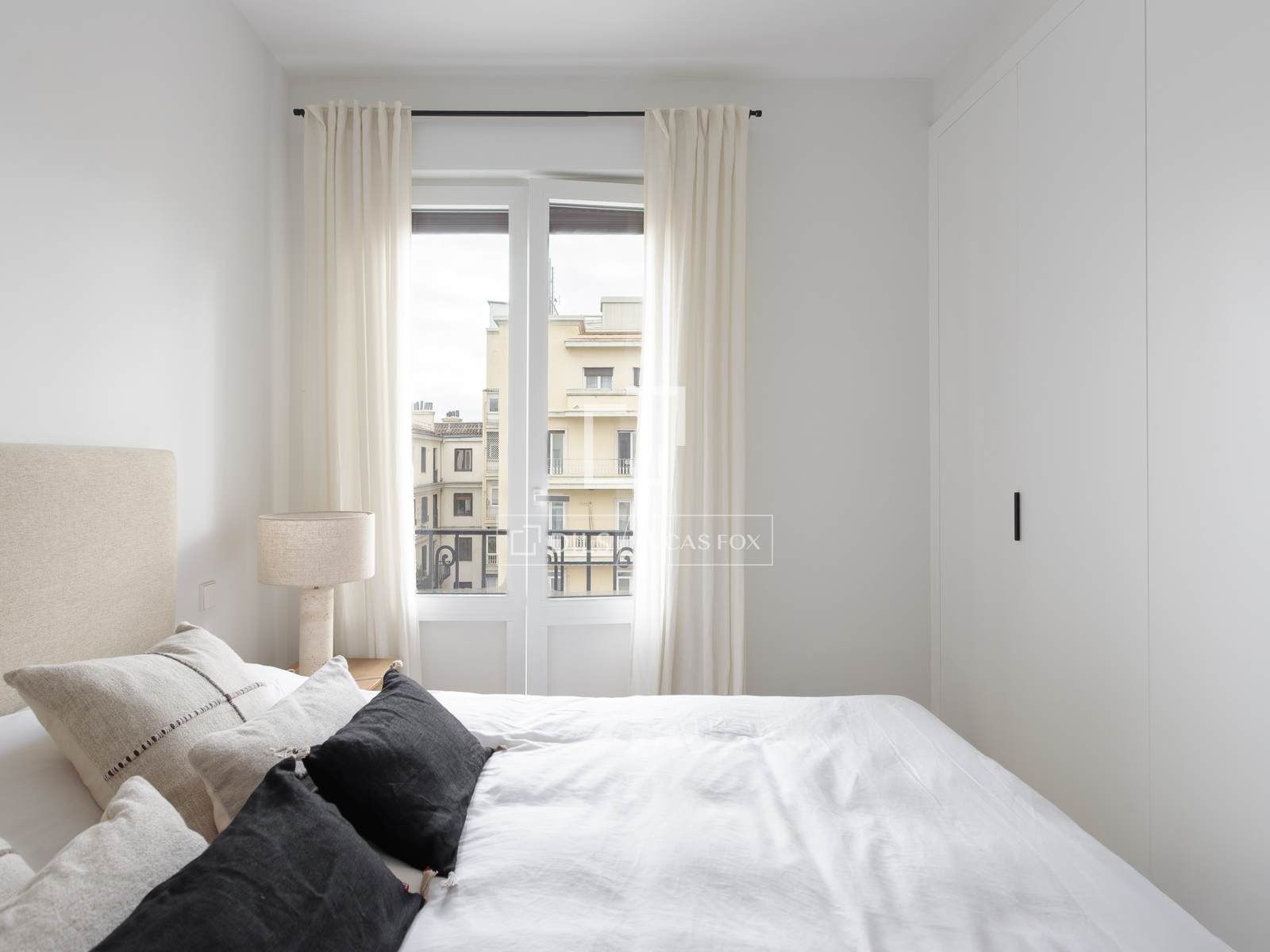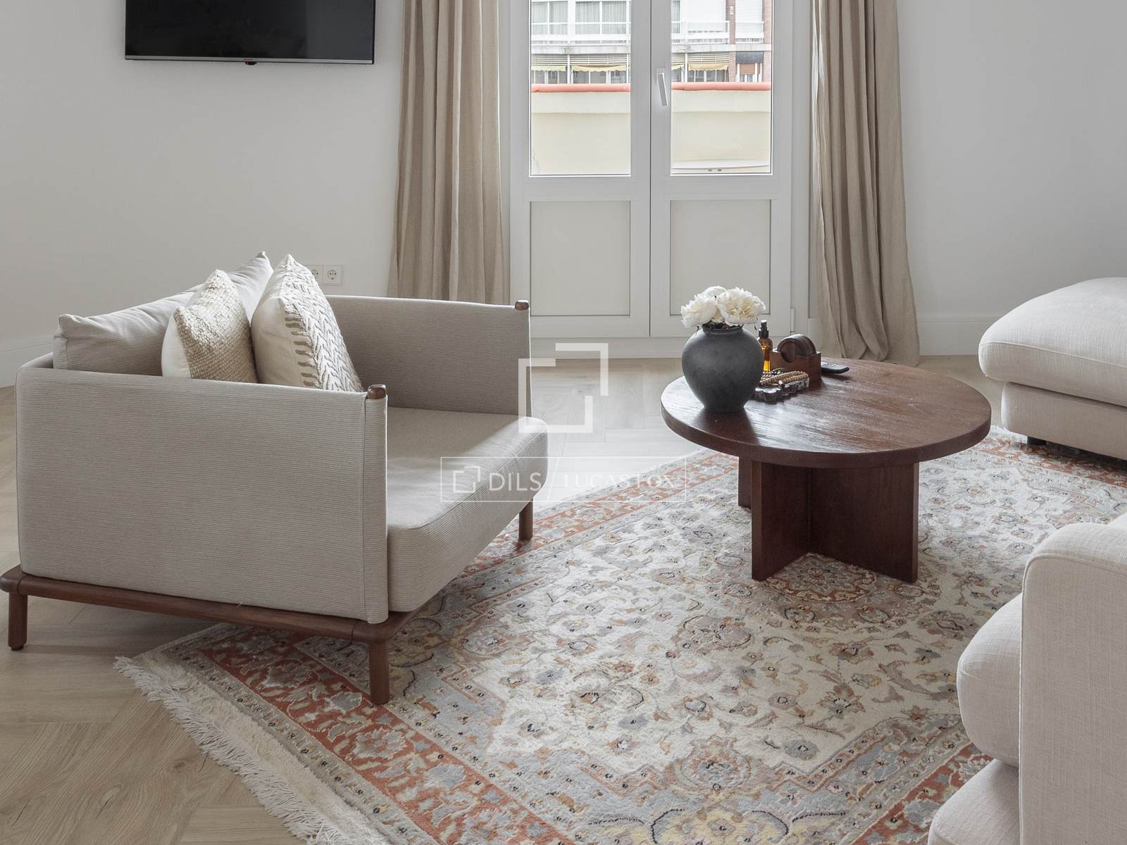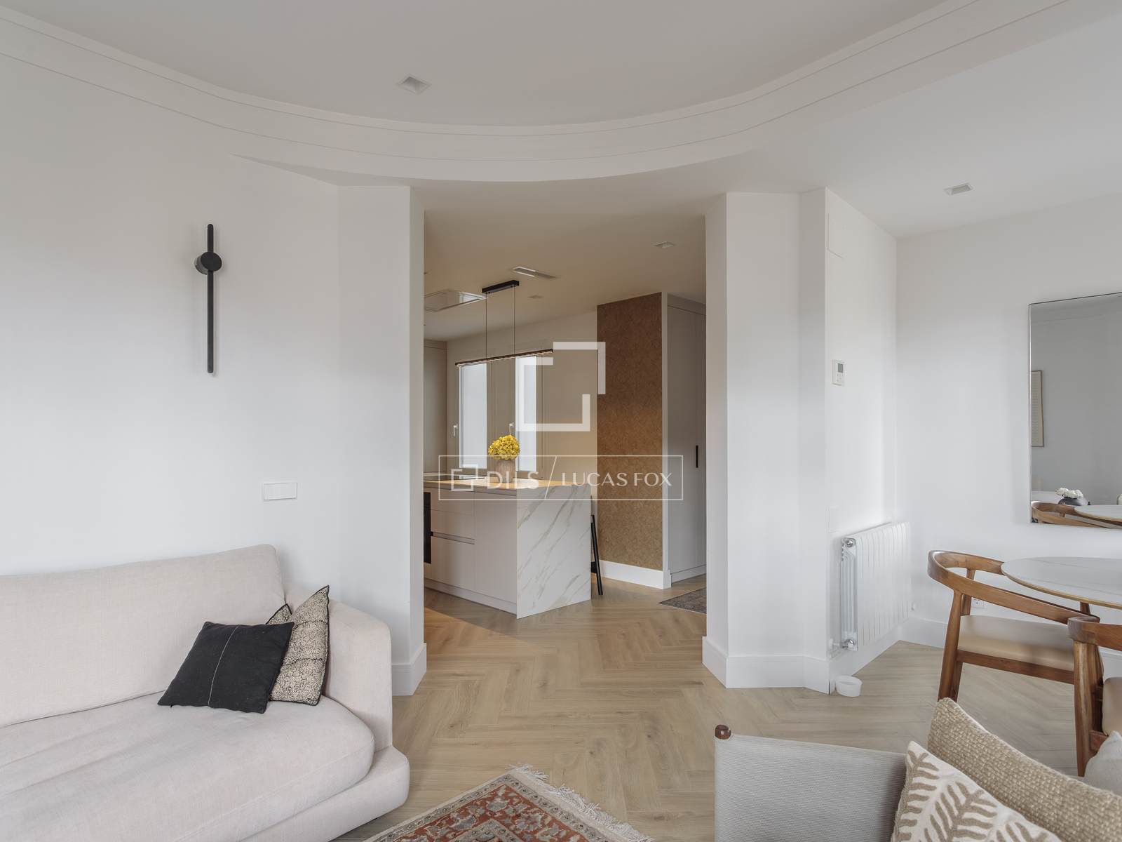 Dils Lucas Fox offers this bright and furnished, recently renovated exterior in the prestigious Salamanca neighbourhood , available from March 25, 2026. It is available for rental periods of 12 to 24 months. The apartment is located 300 meters from the majestic Retiro Park. Situated on the sixth floor , it features a small terrace and unobstructed views over Madrid. The entrance hall, with a coat closet , leads to a spacious dining room living room with a modern, brand-new American-style kitchen and a central island with a breakfast bar. The living room area, furnished with a chaise lounge sofa, access onto a beautiful terrace overlooking the city of Madrid, followed by a dining room for six. The property has two double bedrooms, both exterior-facing, with built-in wardrobes and ensuite bathrooms with showers. The main bedroom bathroom has an exterior. The other bathroom has double doors, so it can also be accessed from the corridor and used as a guest bathroom . The property has central heating with radiators and a heat cost allocator, as well as ducted air conditioning. The building has a concierge service and an elevator. Community fees and property tax (IBI) are included in the monthly rent.