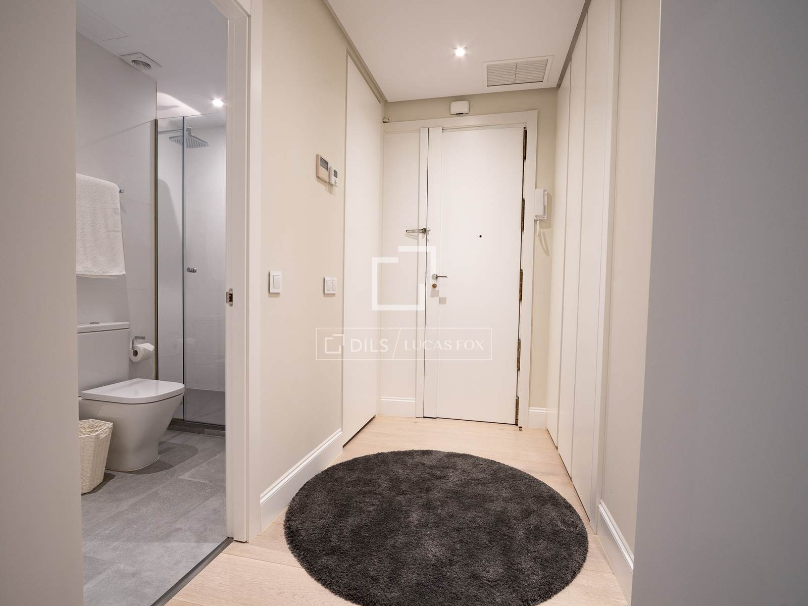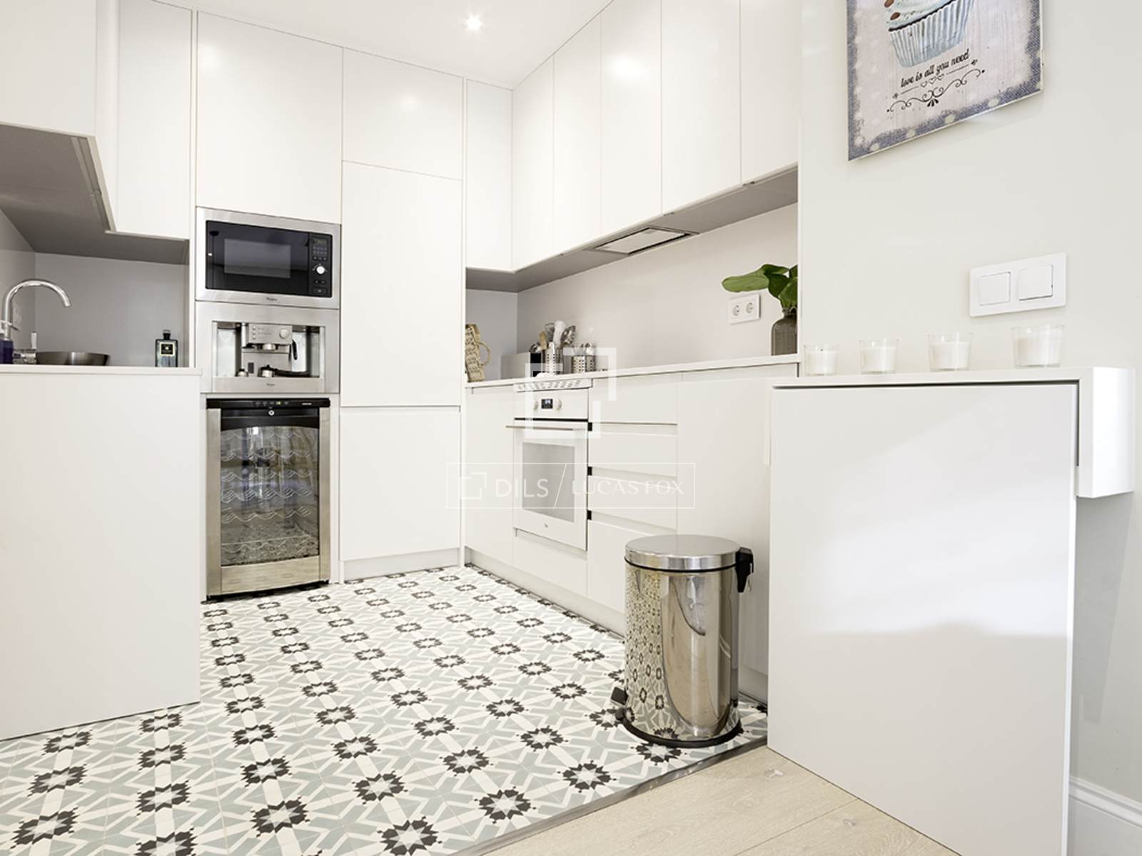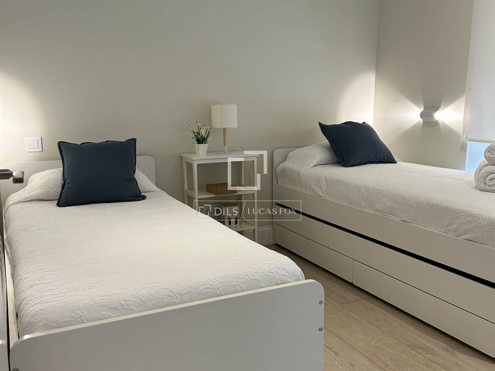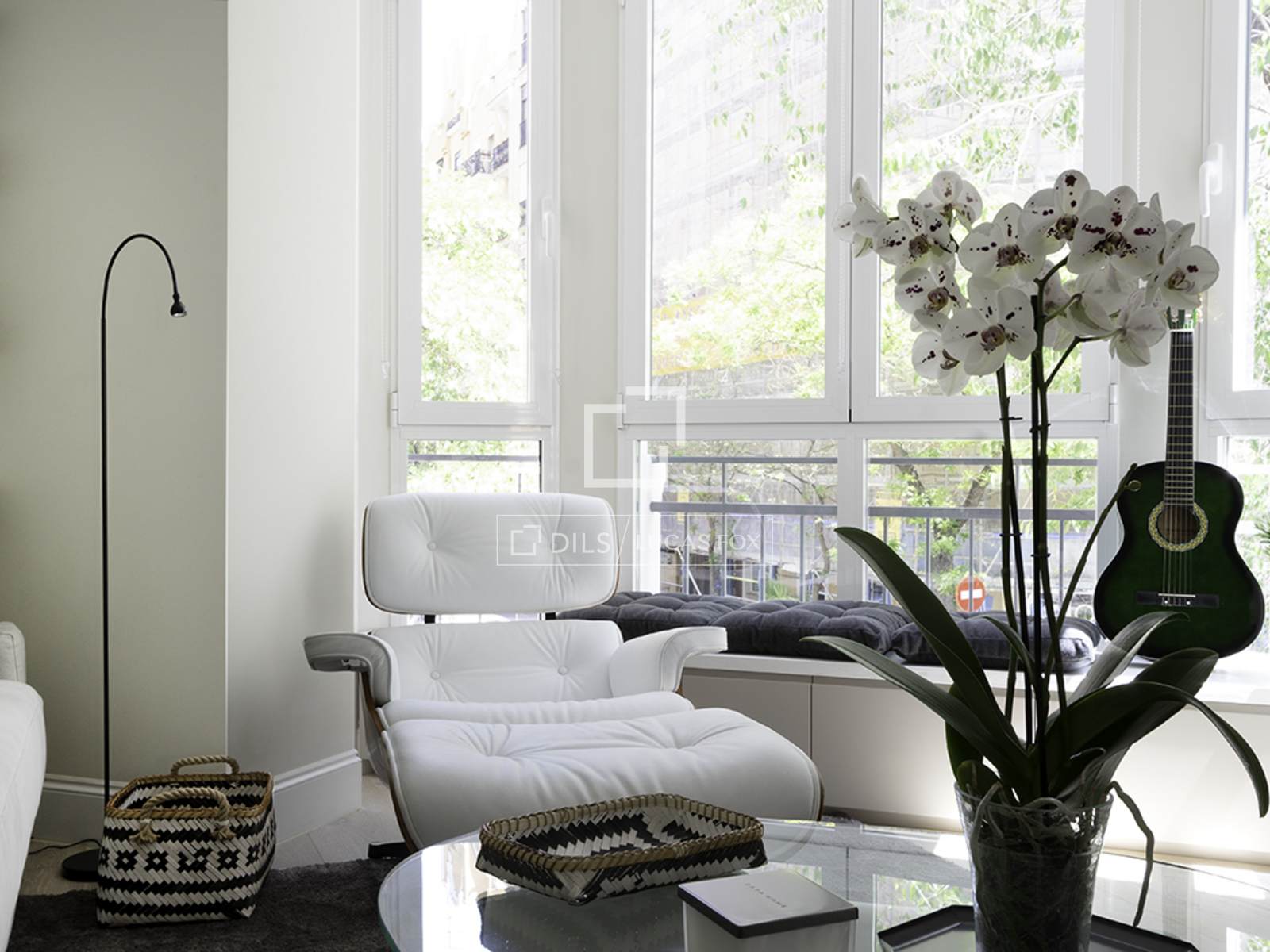 Completely renovated apartment located in the elegant and exclusive Salamanca neighbourhood , in the Lista area, one of Madrid's most sought-after neighborhoods. This area is characterized by elegant buildings with stately facades, tree-lined streets, and a selection of the city's finest restaurants, cafes, and shops. The apartment is situated on the first floor (second floor in US/ exterior) and features contemporary décor with soft tones, perfectly combining comfort and good taste with a very pleasant atmosphere. The interior is bathed in natural light thanks to large windows overlooking the street. The entrance lobby has a built-in wardrobe and leads to the social area on the left, and straight ahead to the two bedrooms. The apartment has an open-plan layout encompassing the living room/ dining room room and integrated kitchen. The living room features a comfortable and modern three-seater gray sofa, a beautiful designer armchair in white leather with an ottoman, a built-in bench with cushions by the window, a large glass centre table, and a large-format smart flat-screen TV. The dining room features an oval marble table for six with four woven chairs and two gray fabric benches, two large cabinets flanking a mirror that gives the area a spacious feel, and a mirrored ceiling light. It has a bay window/balcony overlooking the street. The kitchen has modern, built-in white cabinets and is fully equipped with all the appliances guests might need. Adjacent to the kitchen, in a separate room, is a small laundry area with a sink/washer/mop, separate washing machine and dryer, and cupboards. The main bedroom has a double bed (1.80 x 2.00m) with a cream fabric headboard and bedside tables, built-in wardrobes , and a wall-mounted smart flat-screen TV. It has a modern en-suite bathroom with a glass-enclosed shower. The second bedroom has two single beds (in a trundle bed) with ample built-in wardrobes. The second bathroom , located at the entrance of the apartment, has a shower with a glass enclosure. The entire apartment has wooden floor , except for the kitchen, which has tiles with an attractive geometric design, and the bathrooms, which have tile.