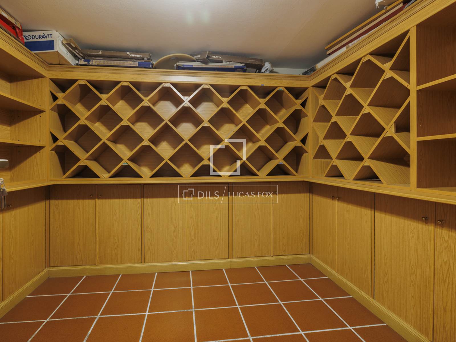On the lower level of the house, in the floor , there is a spacious area that can be used as a meeting room or television room, a wine cellar that can be used for storage, and a storage room. Also on this level is the access to the parking area, which has three large parking spaces.