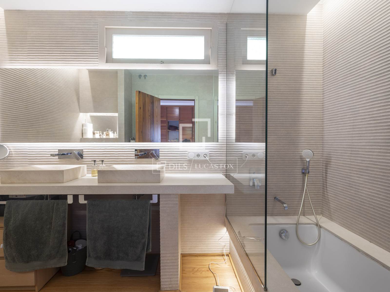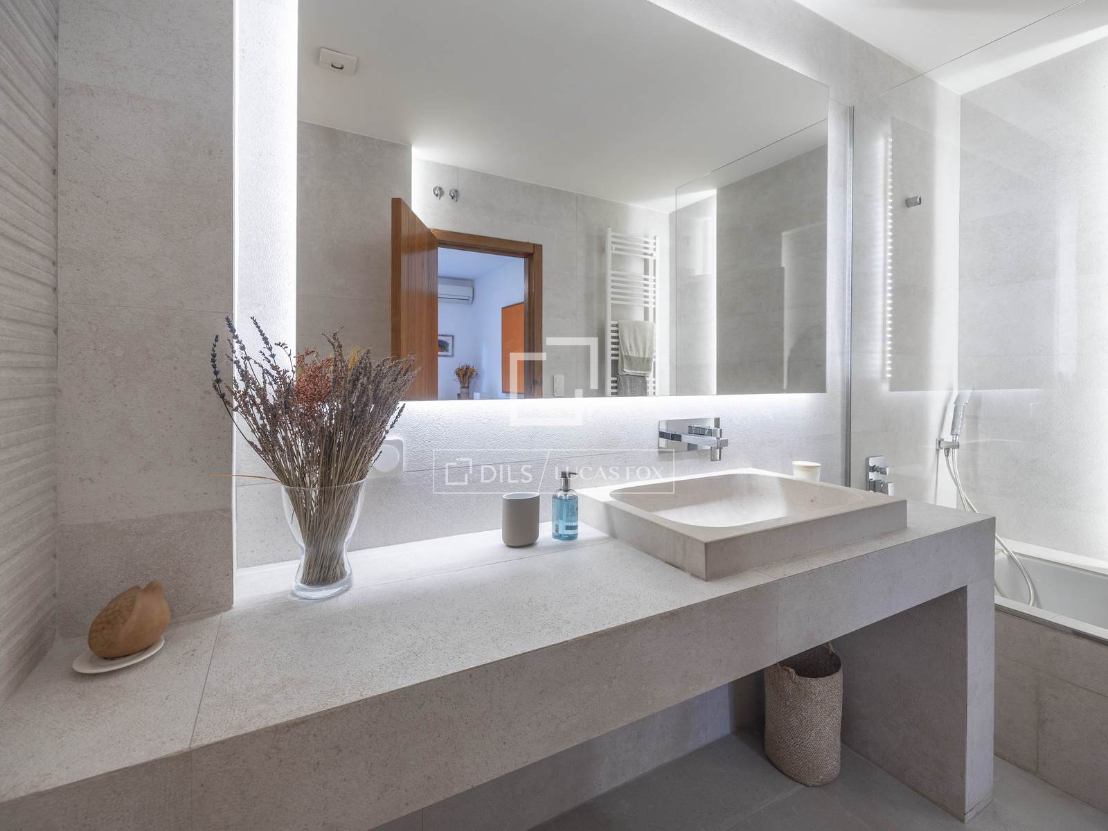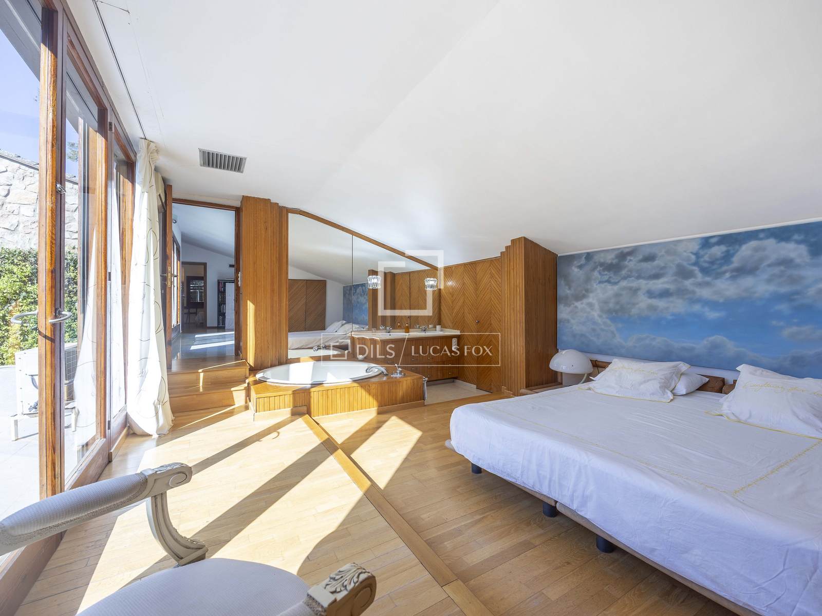 Stairs lead up to the first floor where we find the master bedroom with a bathroom with a luxurious bathtub. A further space on this floor can be adapted according to your requirements, should that be as a living room, gym, office or additional bedroom.