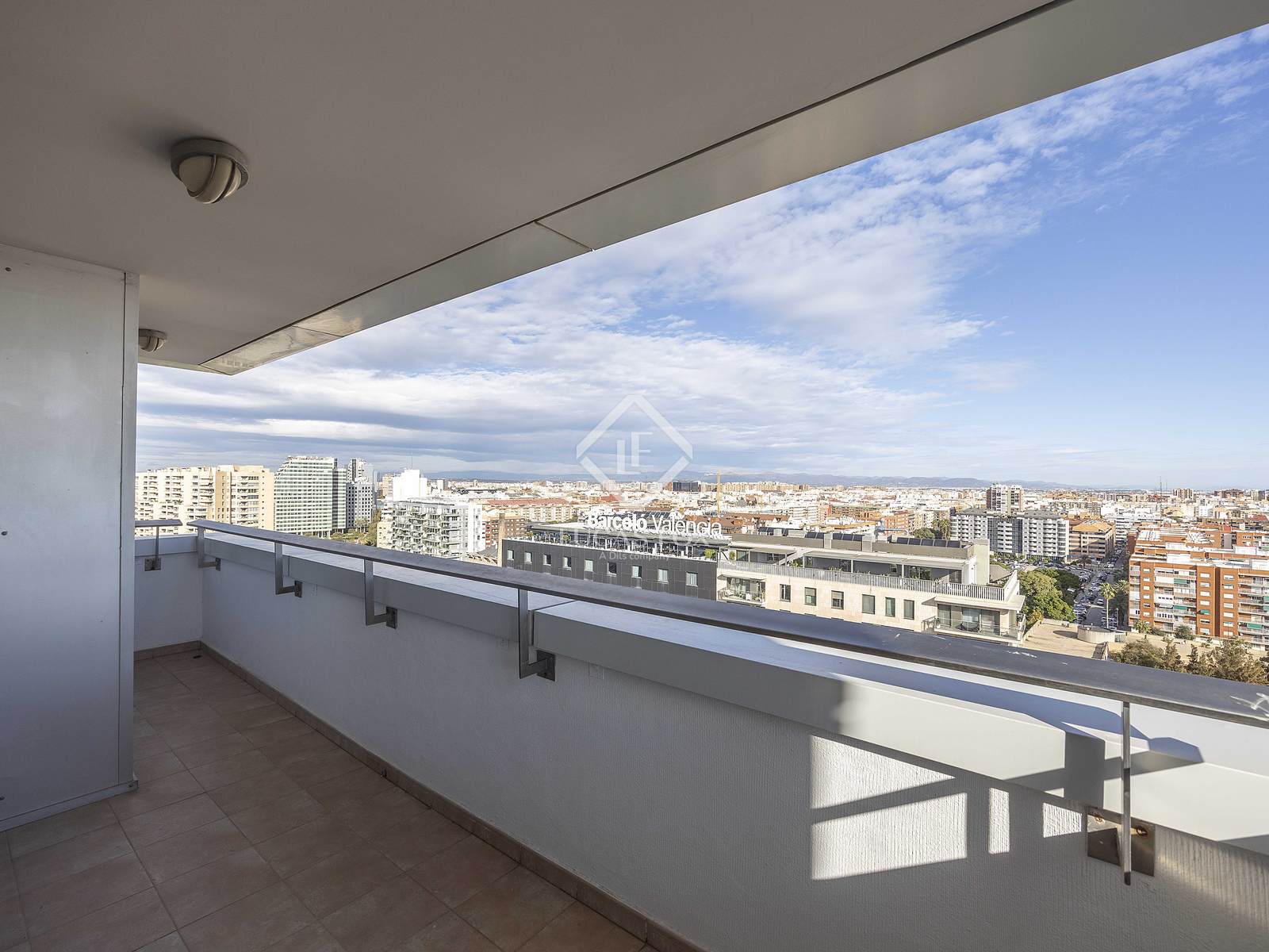 Incredible apartment in one of the most prestigious residential complexes in the city of Valencia, Torre de Francia, with amazing views, four bedrooms and two bathrooms, with a parking space included in the price located in the same building