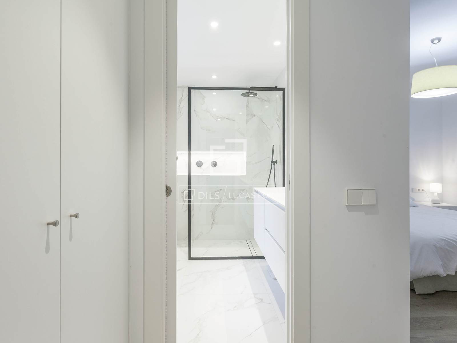 The night area includes a master bedroom with a bathroom with a hydromassage bathtub and a large custom-made wardrobe. On the other hand, there is a double bedroom with fitted wardrobes and another complete bathroom with a fitted washing machine.