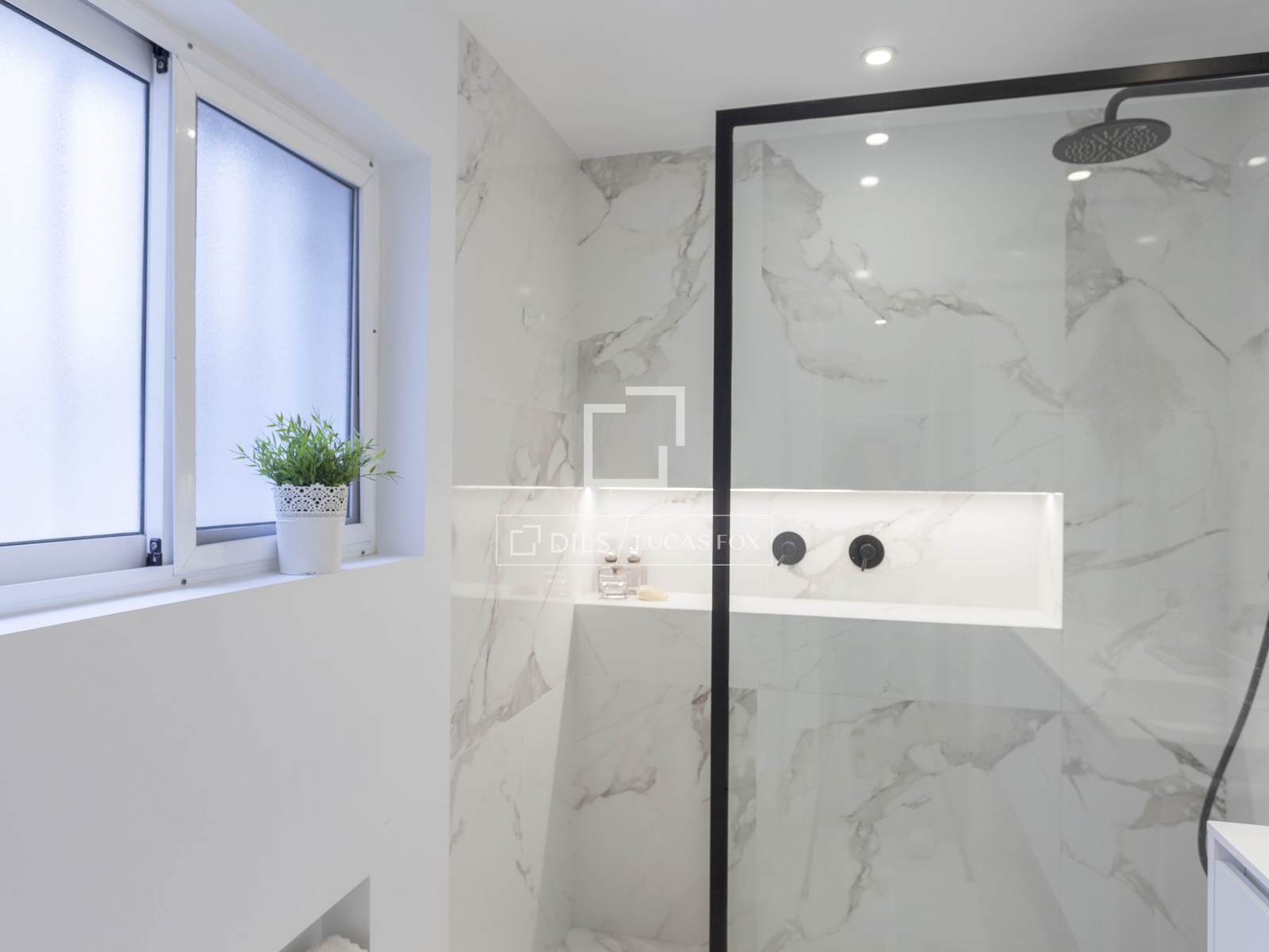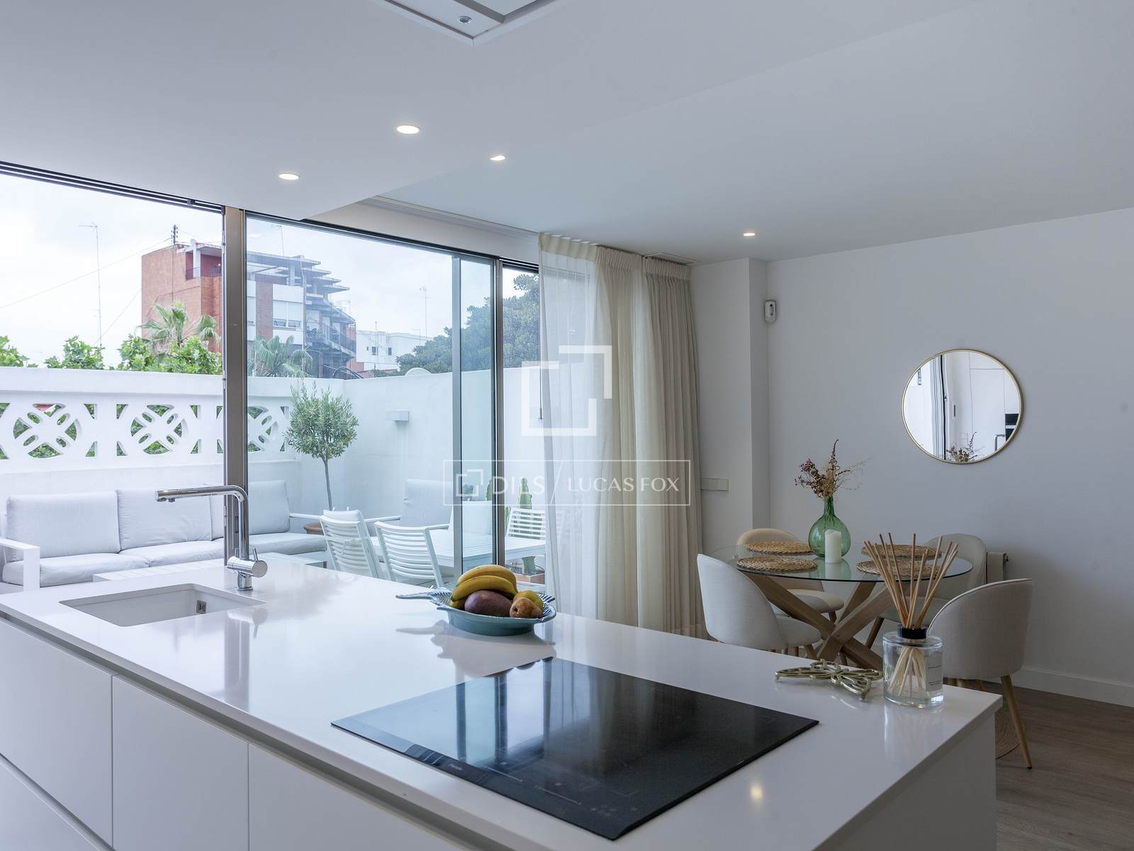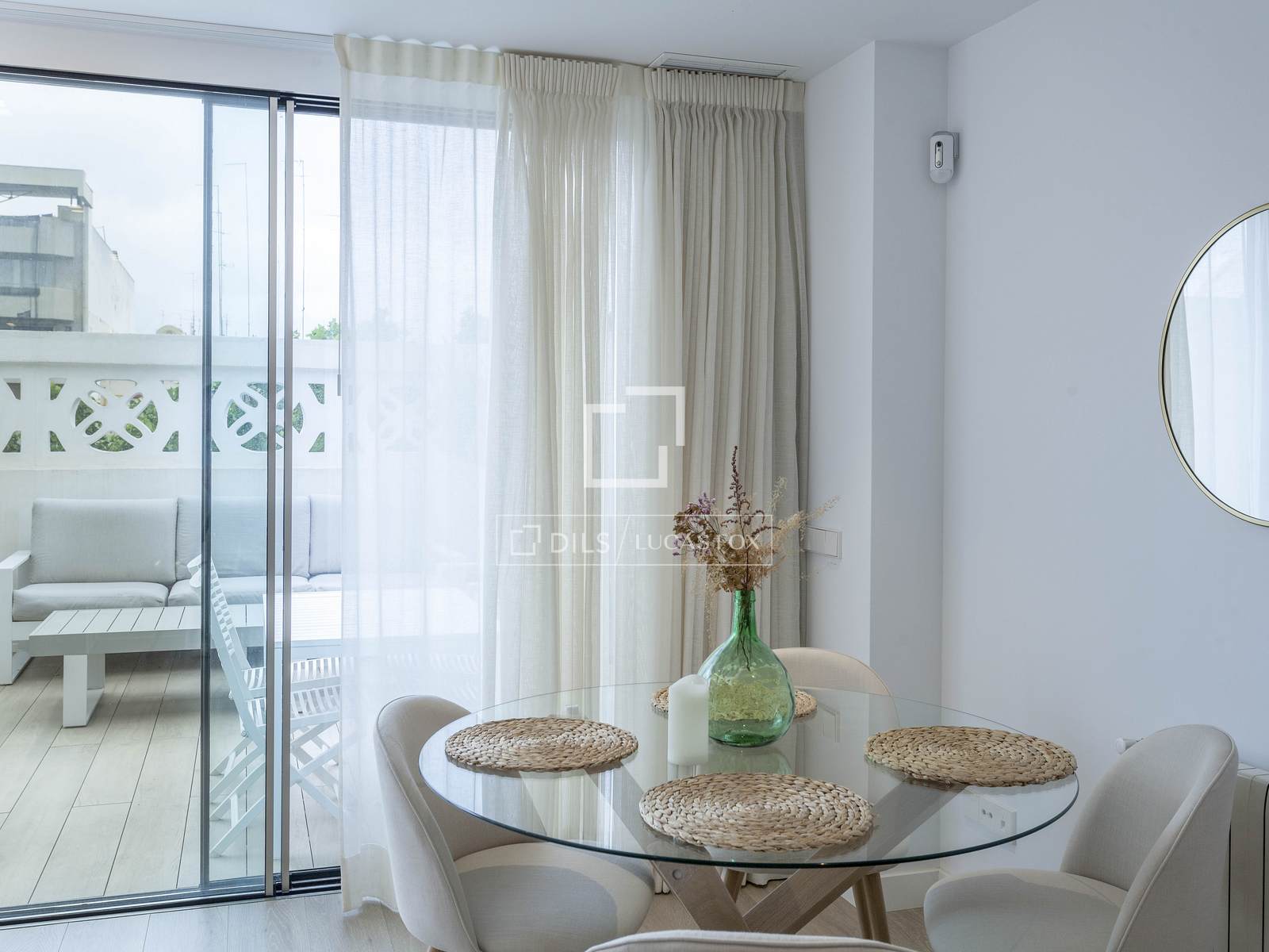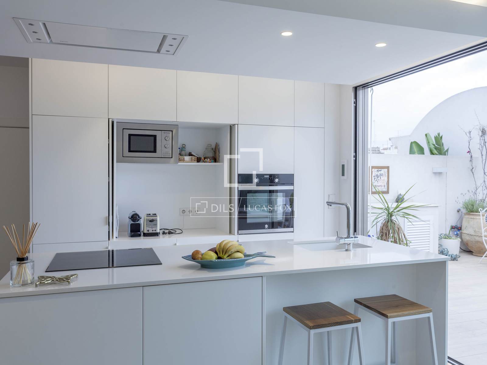 The terrace has porcelain flooring by Porcelanosa, an awning and drip irrigation for the different flower pots.