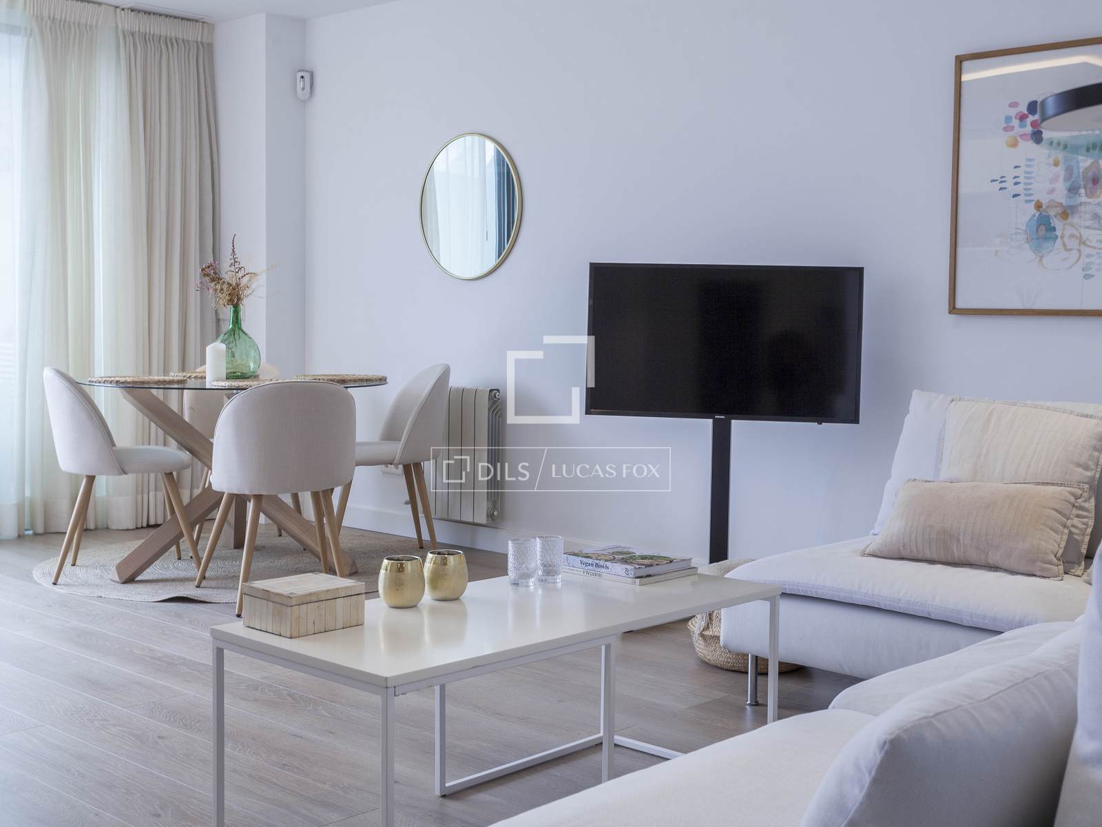 - Living room with open kitchen