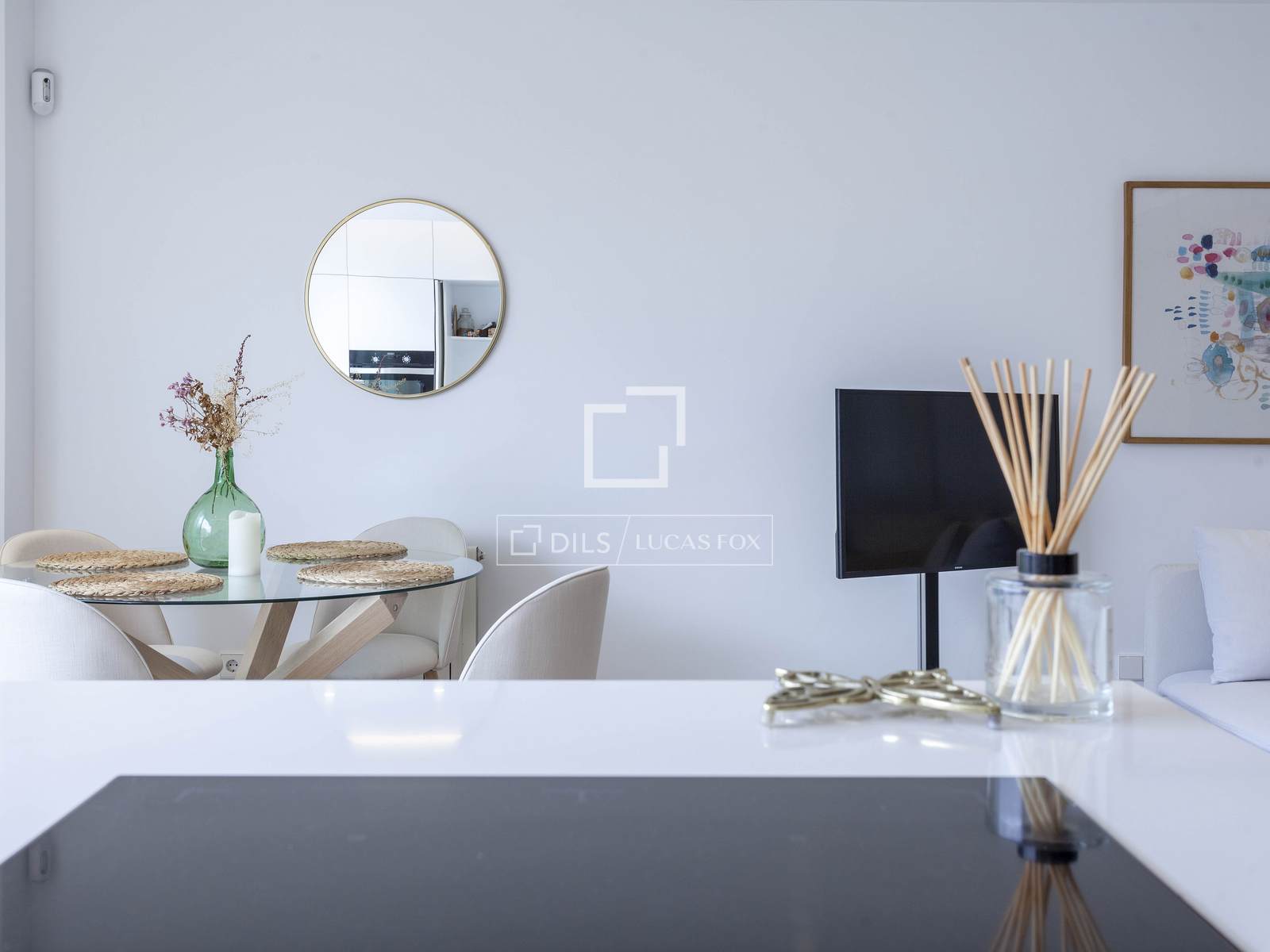 Upon entering the property, we find ourselves in an open space that connects the office area with the living room and the kitchen with access to the terrace, making the day area a very functional and fully equipped space to enjoy the Valencian sun and summer nights.