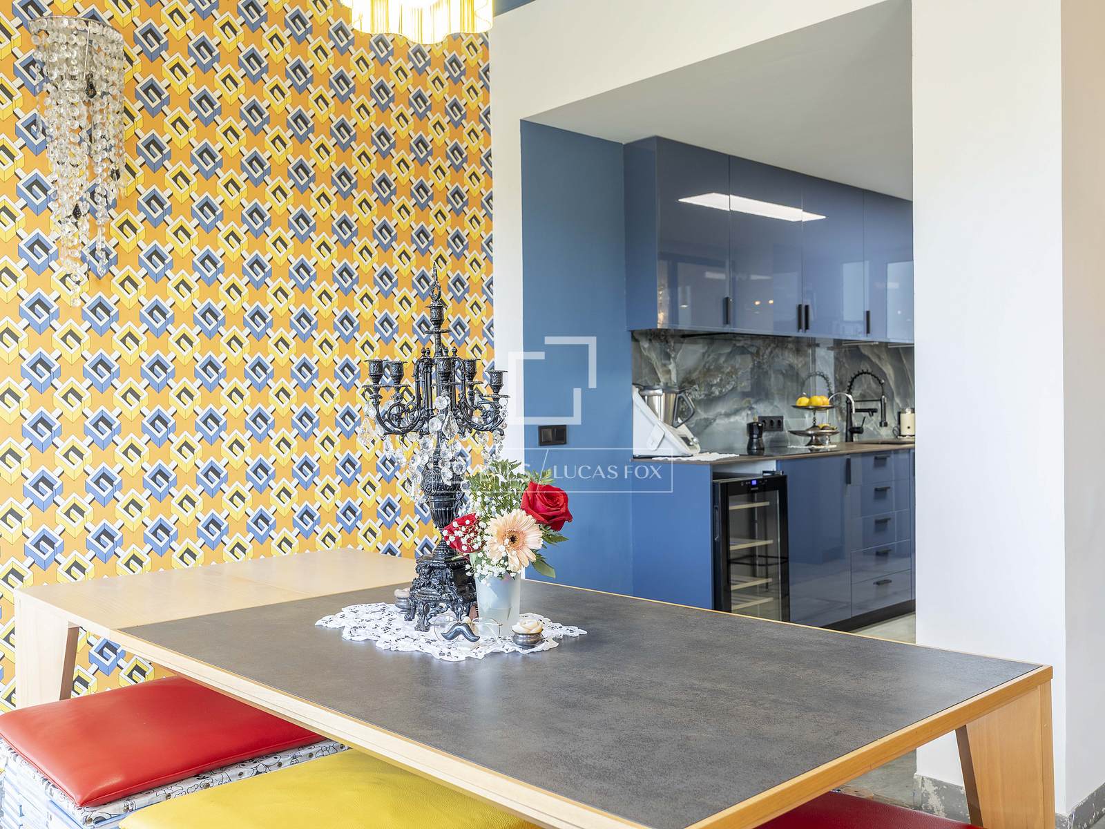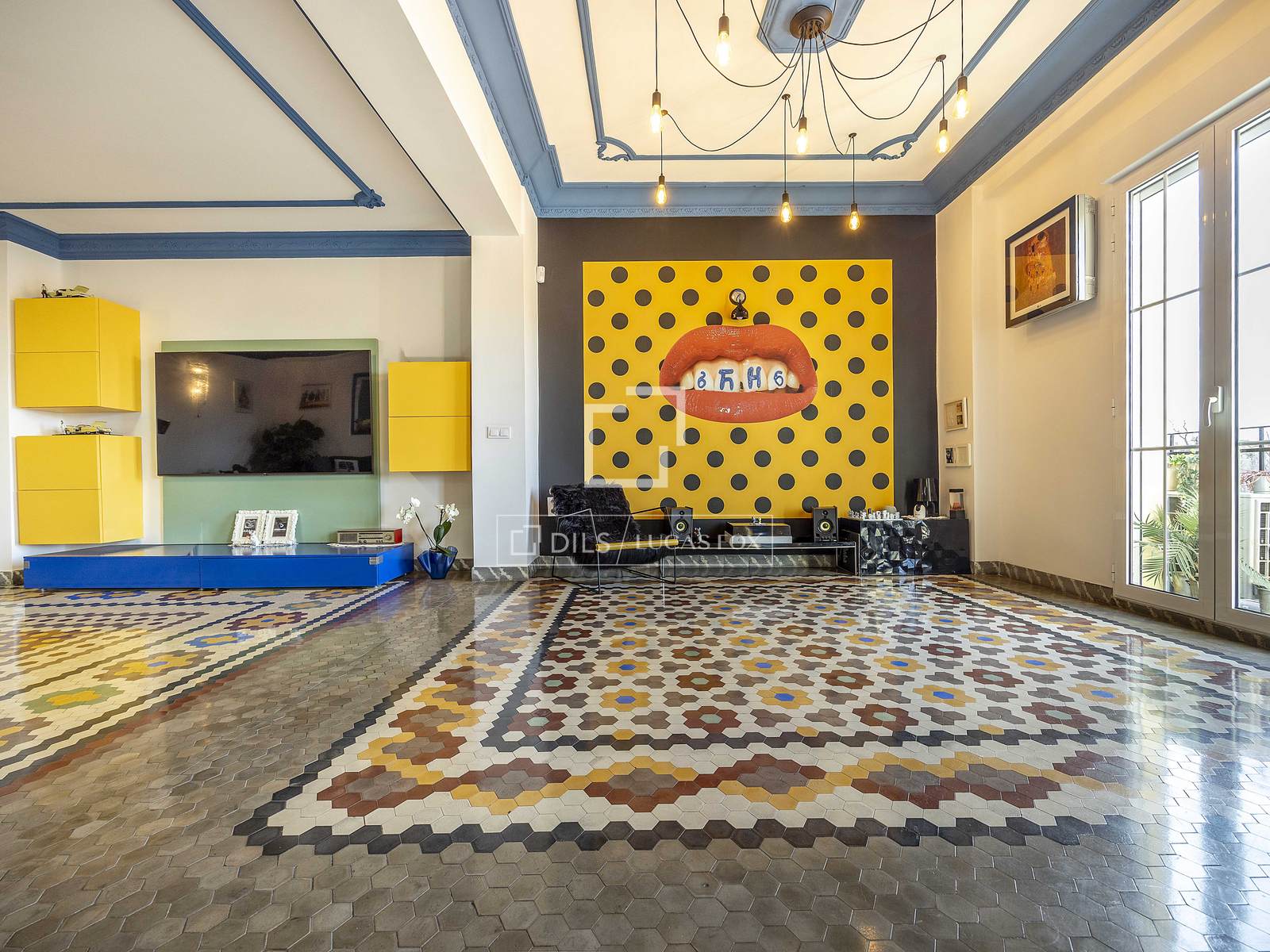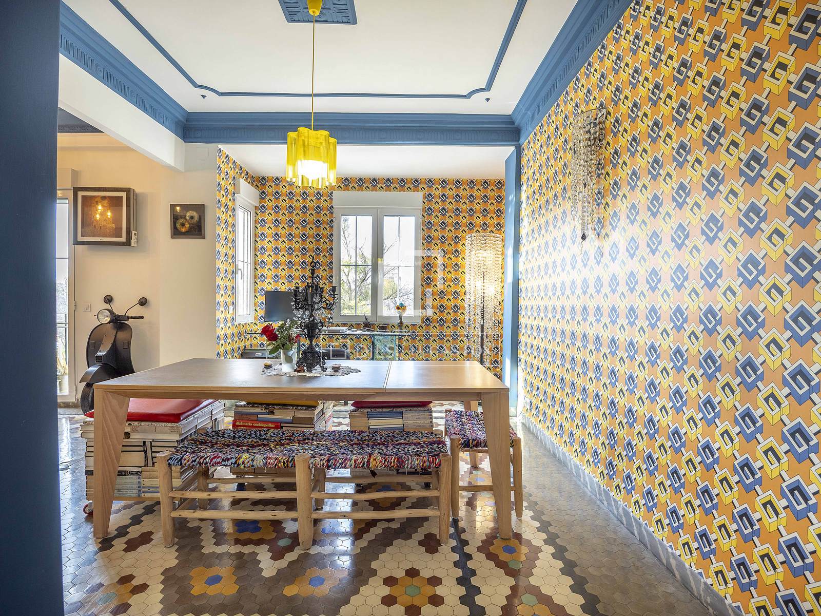 The property retains valuable original architectural features, such as the meticulously restored hydraulic tile floors and decorative moldings that evoke its stately past. Upon this classic foundation unfolds a bold aesthetic, marked by contrasts, artistic pieces, decorative lighting, and an intense color palette that transforms each room into a distinct visual experience. The highly unique and deliberately distinctive décor forms an essential part of the property's identity.