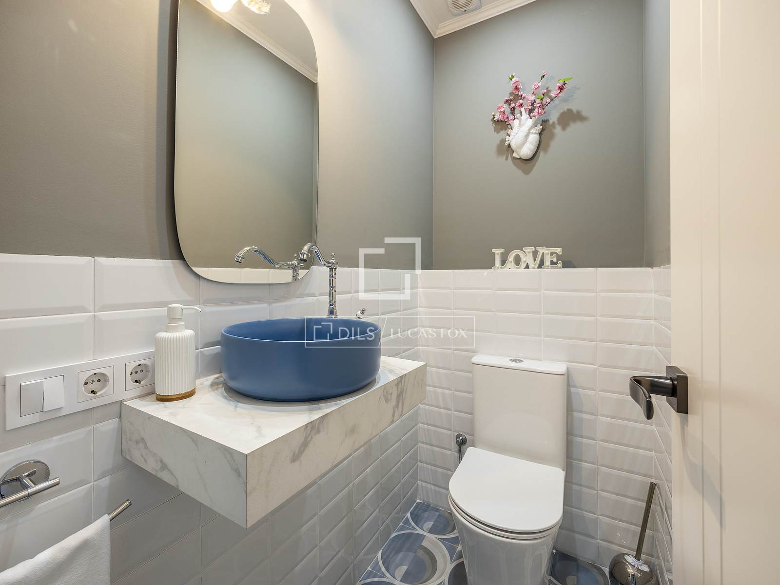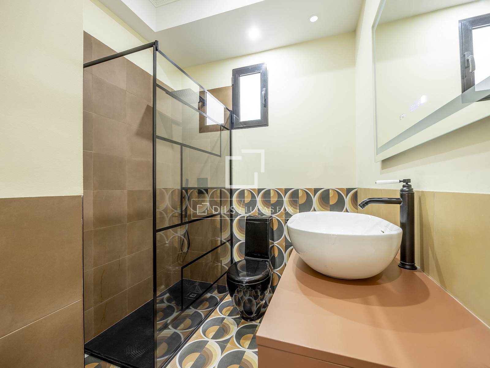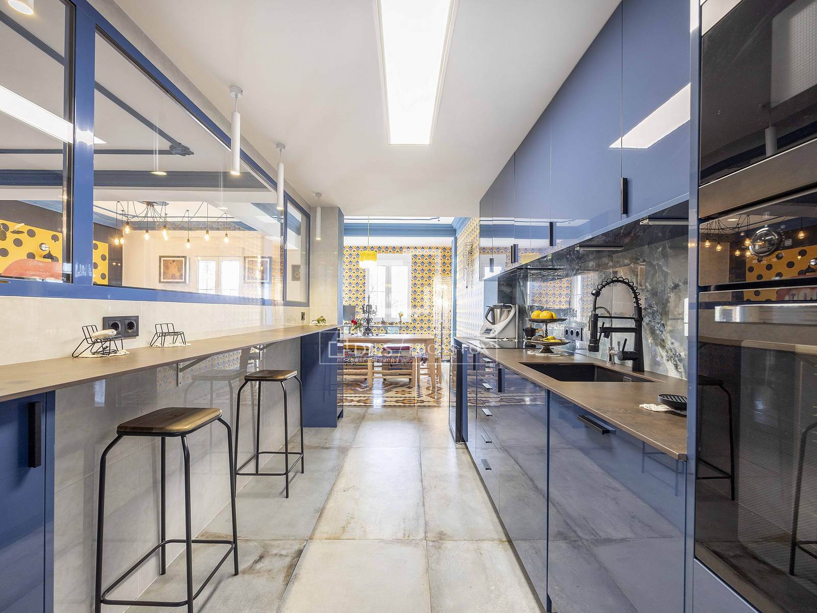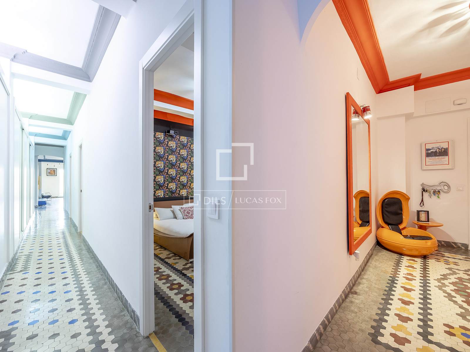 The property retains valuable original architectural features, such as the meticulously restored hydraulic tile floors and decorative moldings that evoke its stately past. Upon this classic foundation unfolds a bold aesthetic, marked by contrasts, artistic pieces, decorative lighting, and an intense color palette that transforms each room into a distinct visual experience. The highly unique and deliberately distinctive décor forms an essential part of the property's identity.